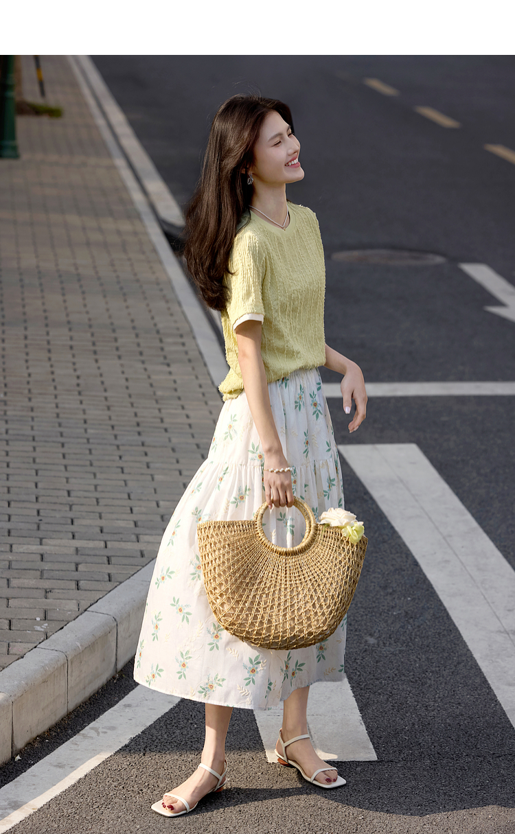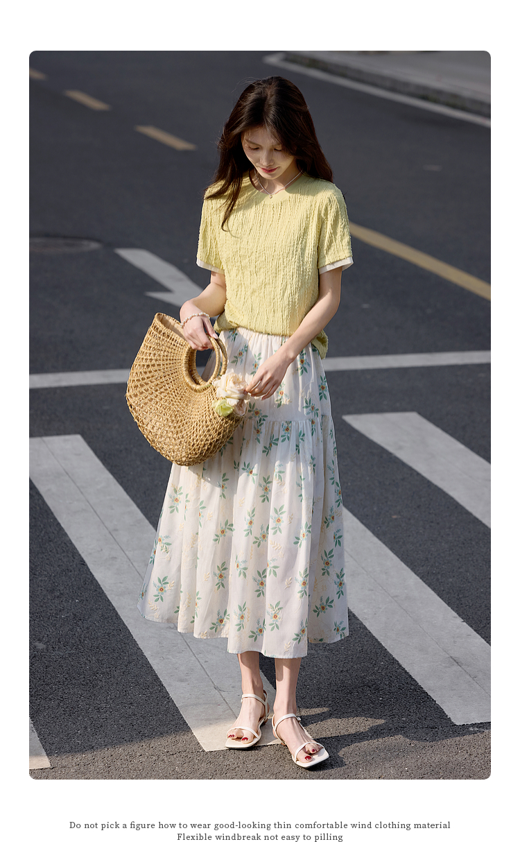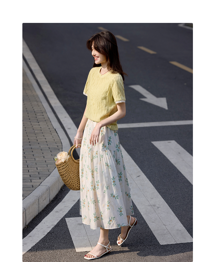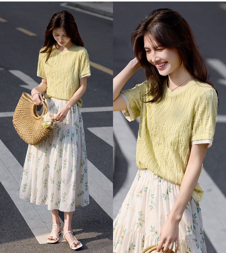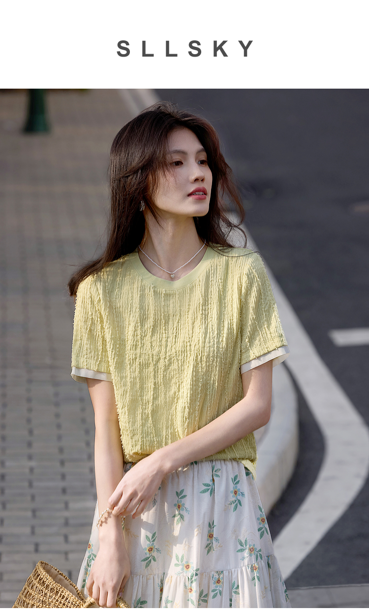 【专属特价】熙世界肌理针织提花T恤女短袖2025夏季新款法式气质正肩体恤上衣