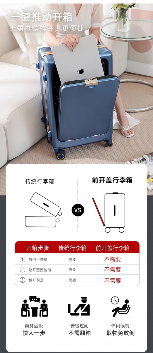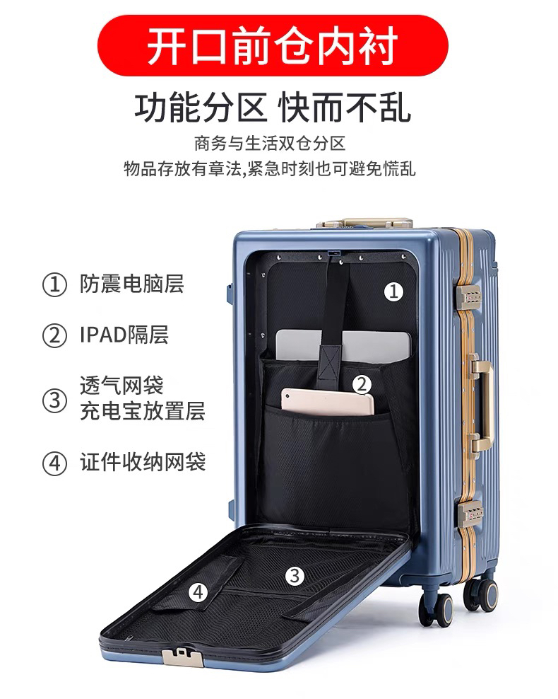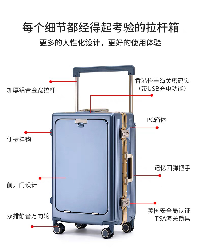 ECTOR HARDEN高端奢侈品牌行李箱男女宽拉杆前置开口多功能登机箱