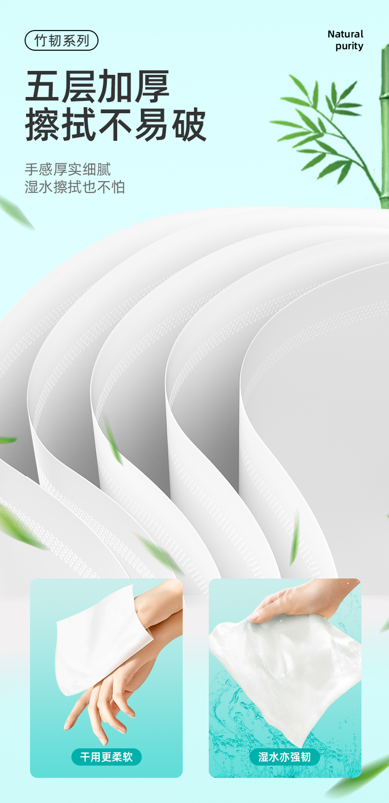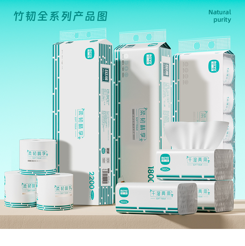 若禺无芯卷纸5层加厚国潮竹韧系列2200g/提12卷/提到手6大提原生竹浆柔韧舒适 RJ1402
