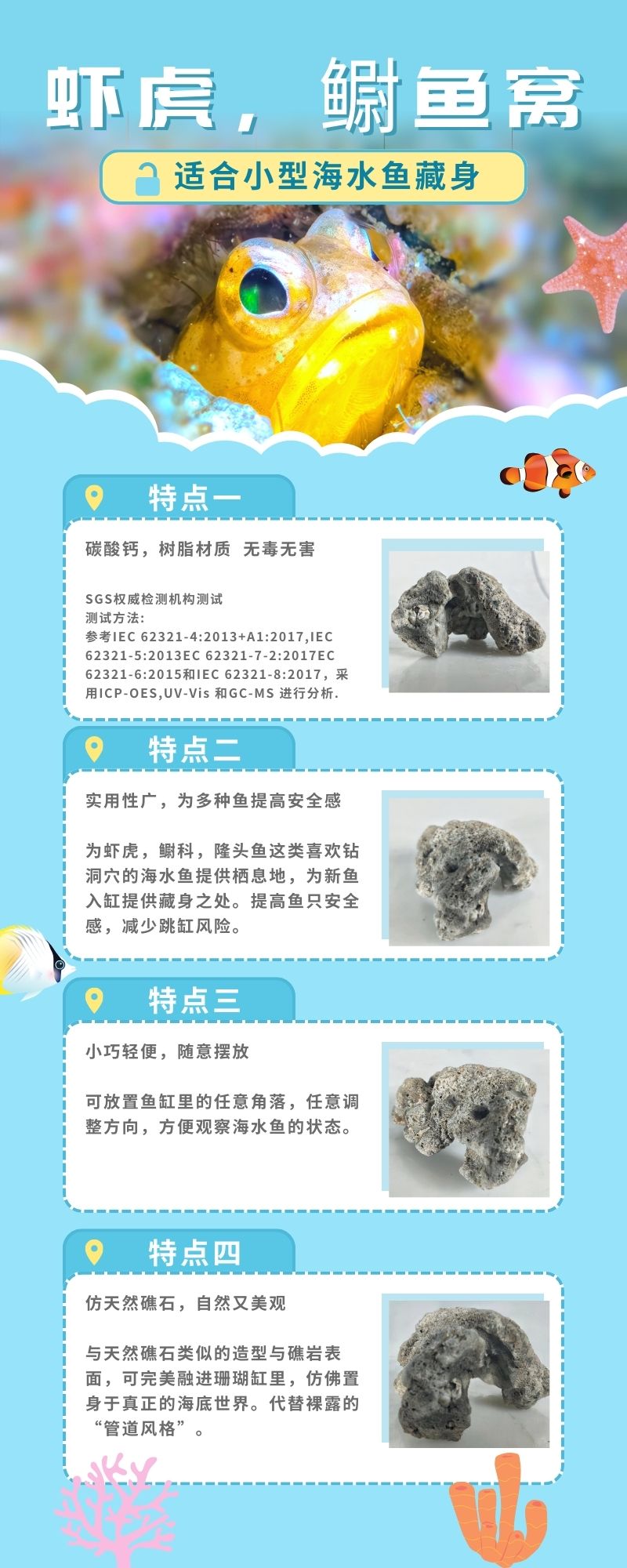 虾虎,鳚鱼藏身窝 代替管子 鱼虾窝 鱼儿藏身躲避屋 石头摆件