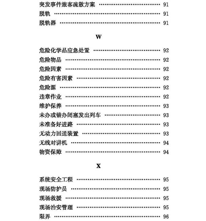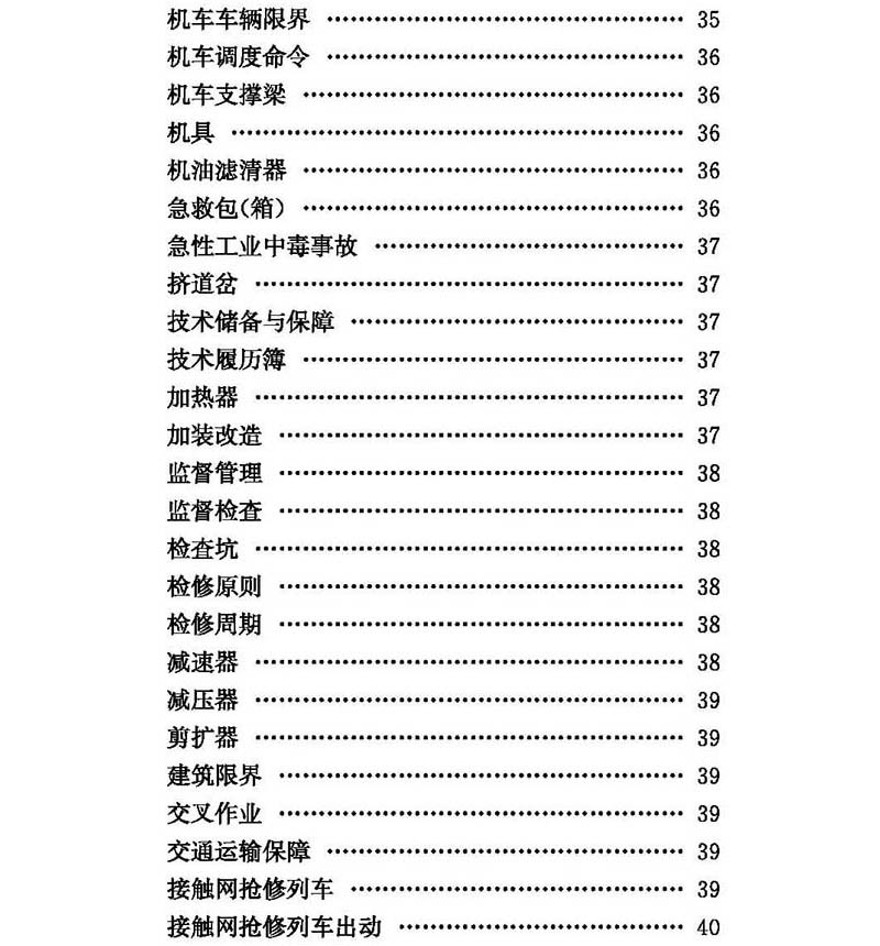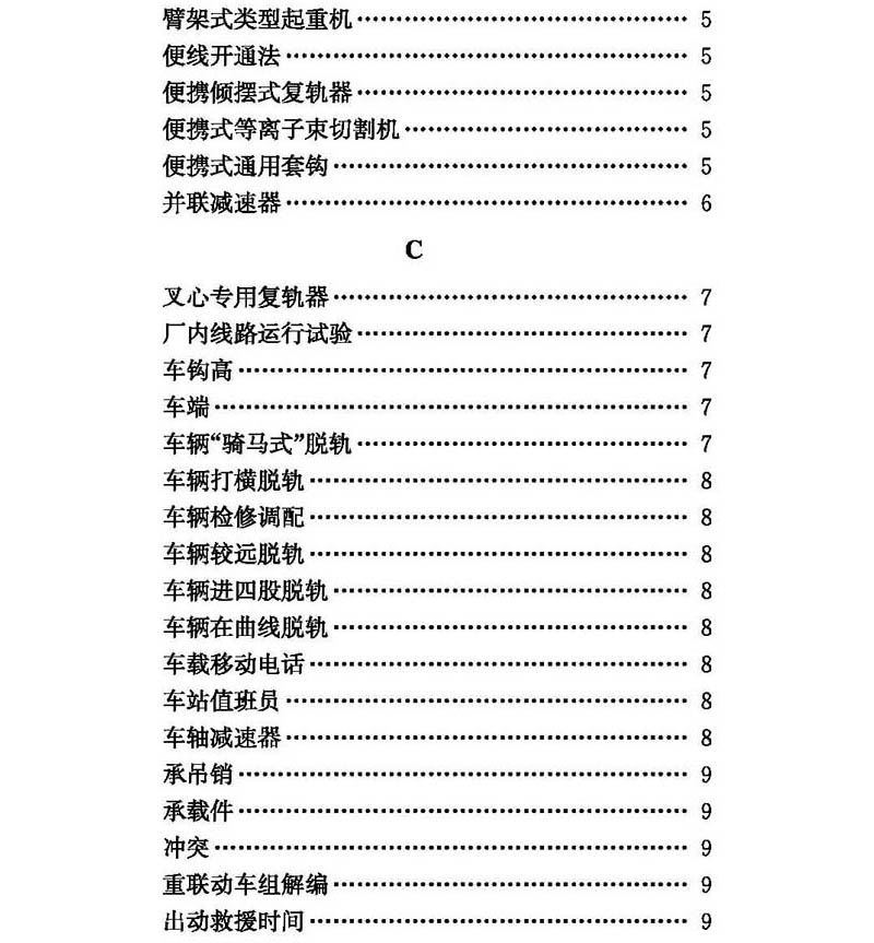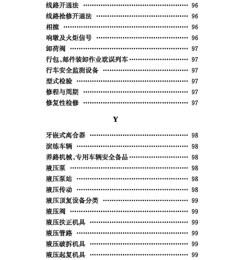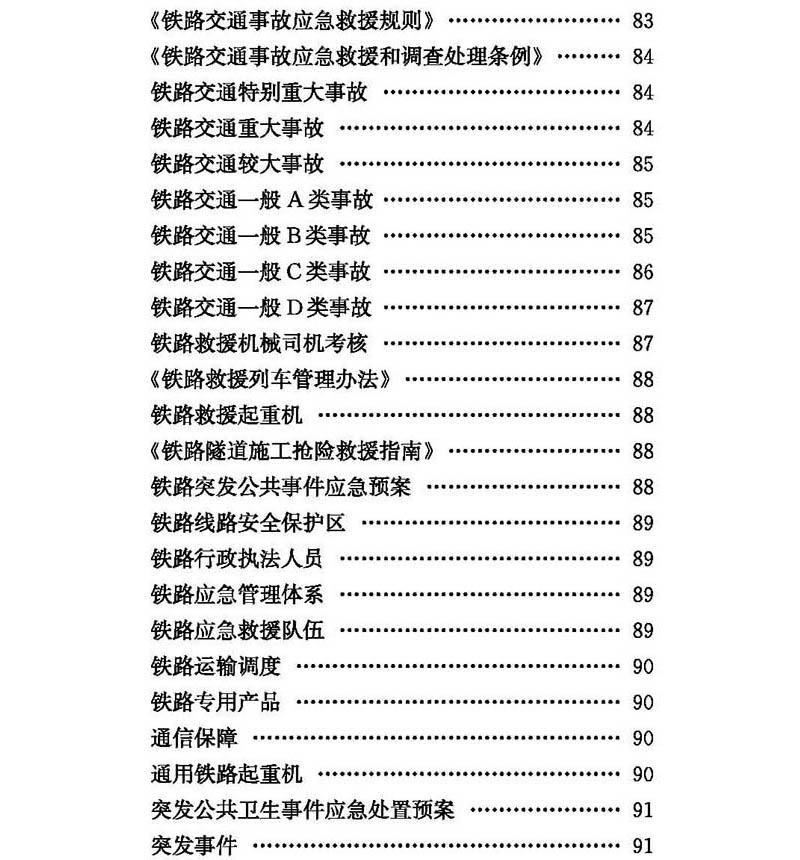 为准确理解和掌握铁路交通事故应急救援相关术语、词汇的内涵,以更好地普及铁路交通事故救援知识和提高铁路应急救援工作水平,本书统一整理、归纳提炼出常用的铁路交通事故救援术语、词汇并对其释义, 以适应与配合广大干部职工的学习和实践工作需要。本书适合铁路交通事故应急救援相关从业人员使用,也可供高校师生学习和参考。为写好本书,编者查阅了大量资料,从中归纳提炼出六百多条术语、词汇,并在附录中提供了与铁路交通事故救援有关的机具配置和技术参数。由于当前铁路发展变化很快,相关术语、词汇也在动态发展变化,老词逐步成熟,新词不断涌现,因此,本书较难囊括所有出现的术语、词汇。