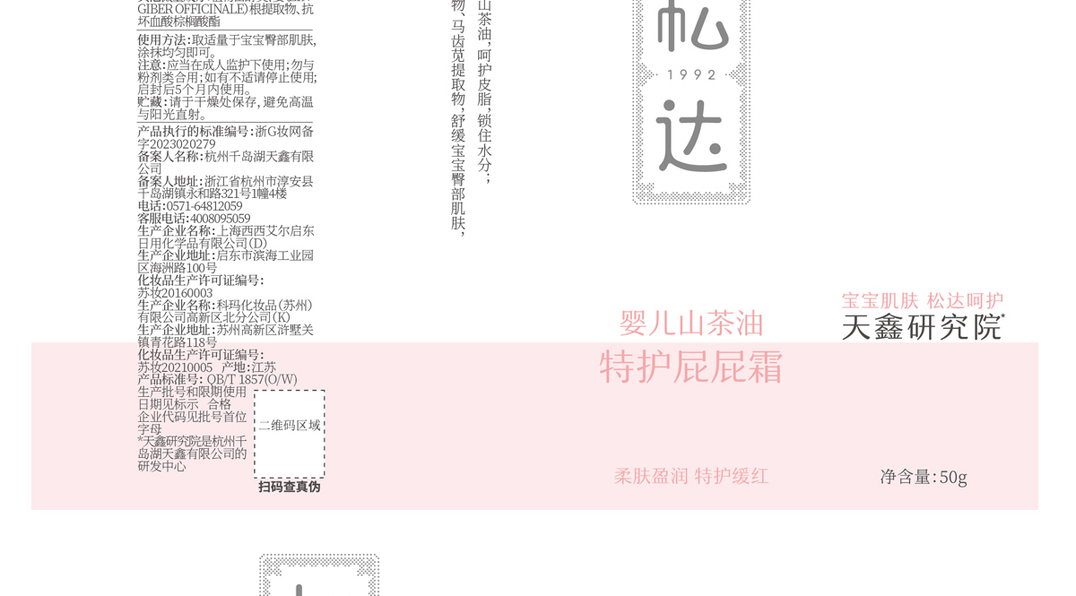 松达婴儿山茶油特护护臀膏50g屁屁霜