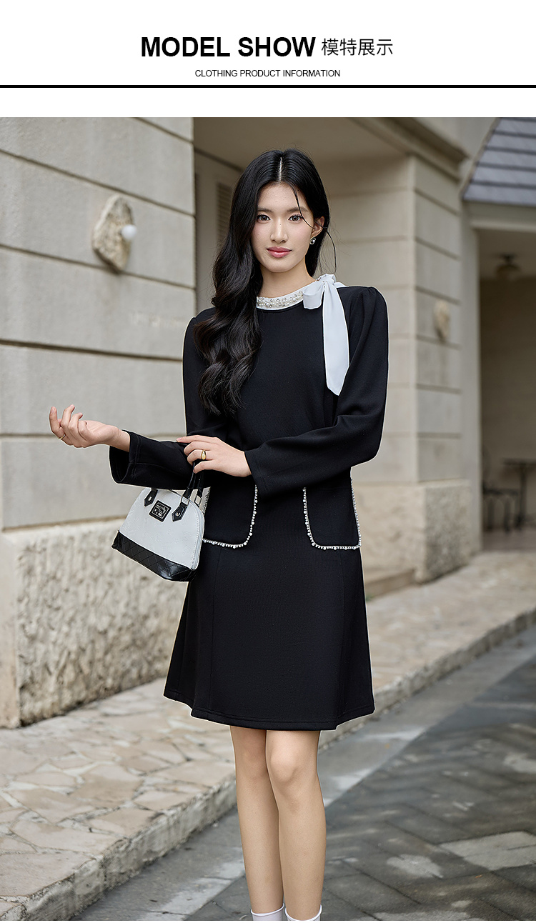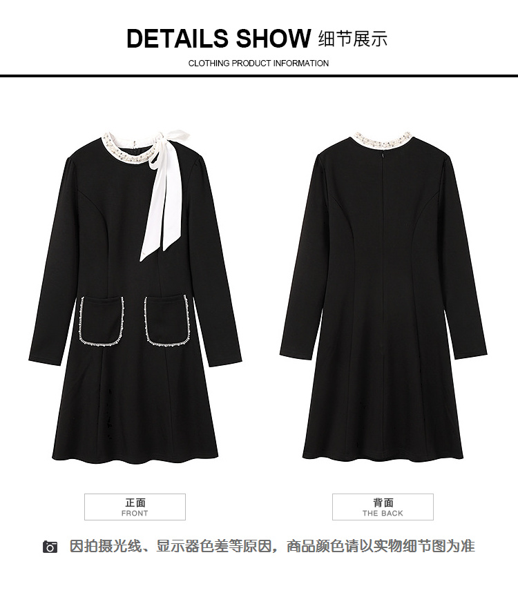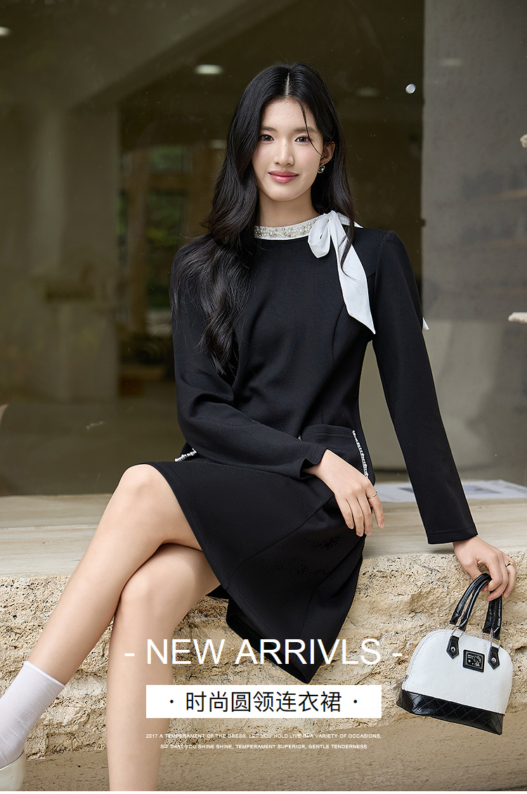奢姿大码女装2026冬季蝴蝶结钉珠装饰裙子胖妹妹时尚圆领连衣裙9954894374