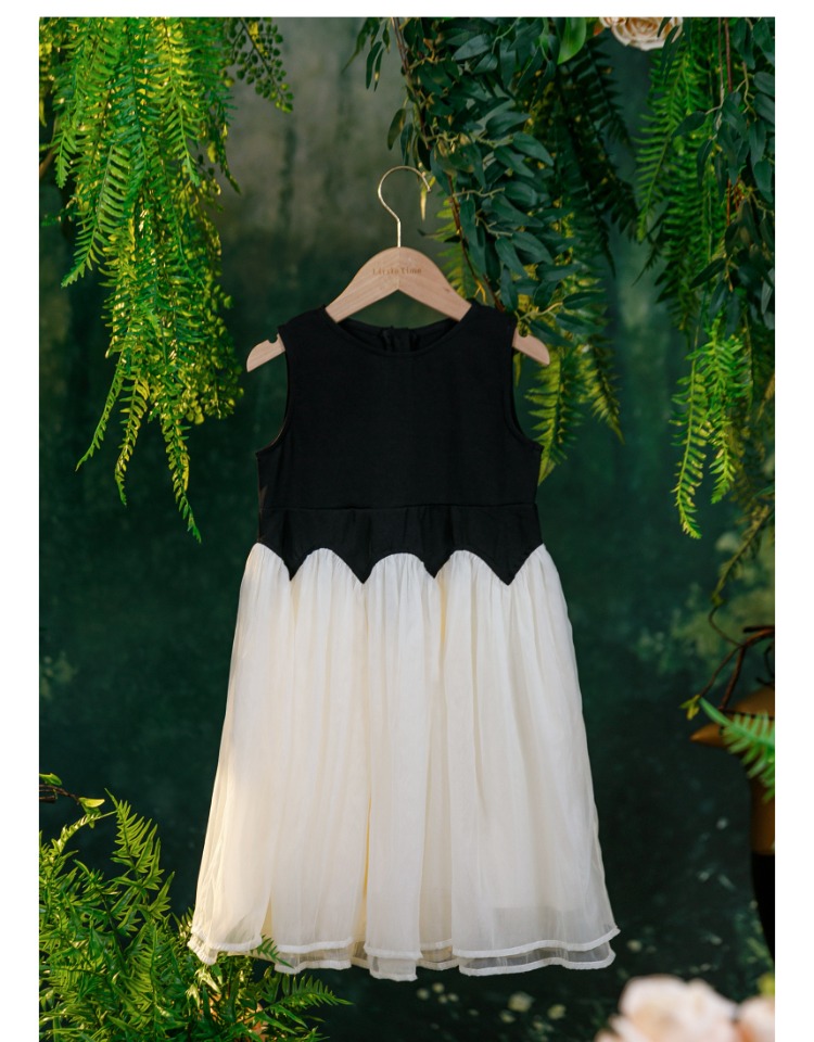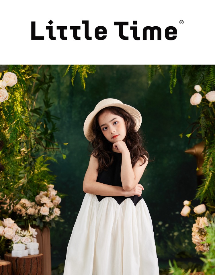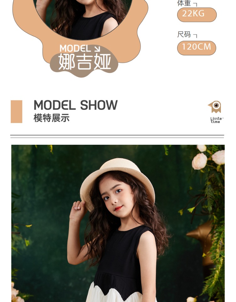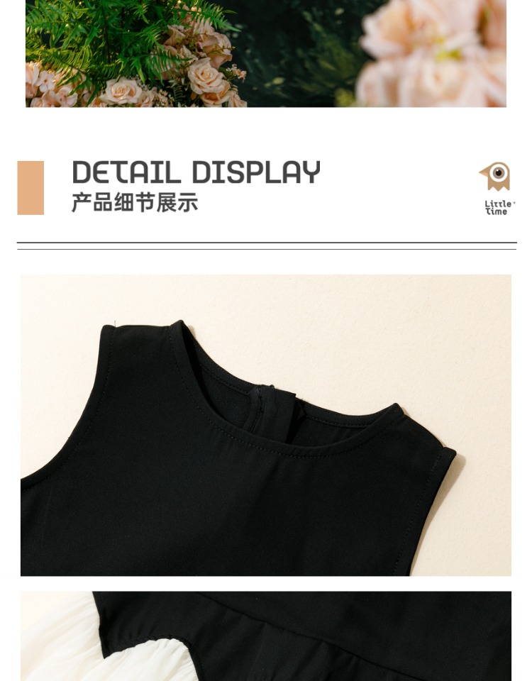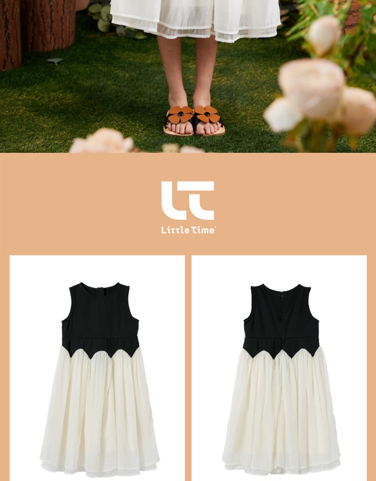 littletime女童连衣裙2023夏新款撞色洋气连衣裙纱纱公主裙