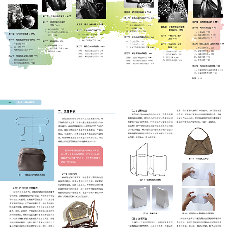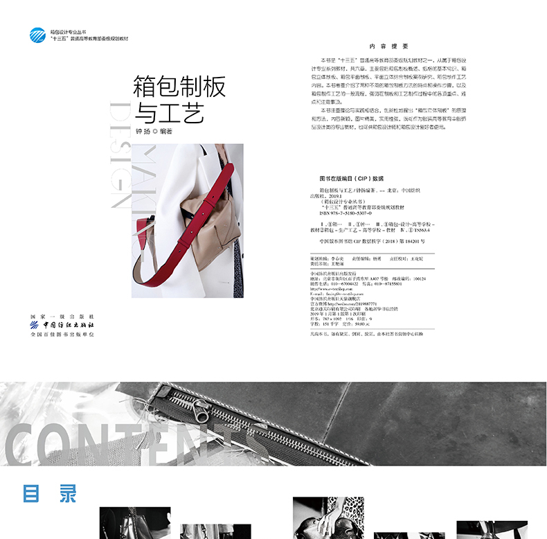 《箱包制板与工艺》一书注重理论与实践相结合,创新性地提出“箱包立体制板”的原理和方法,内容新颖,图片精美,实用性强,既可作为服装高等教育中服饰品设计类的专业教材,也可供箱包设计师和箱包设计爱好者使用。