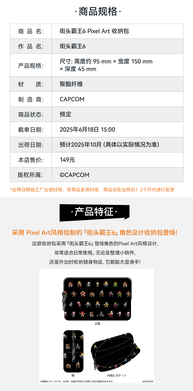 【GSC现货】街头霸王6 Pixel Art 收纳包