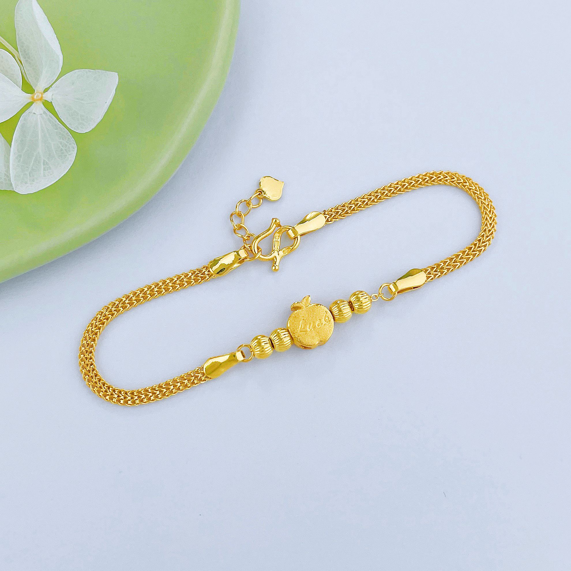 【限时克减150元】足金999.9 调节LUCK幸运苹果间珠手链(AF050SL00058)(预售产品下单后不退款不退货不换货不补差价)(预售产品下单后不退款不退货不换货不补差价)
