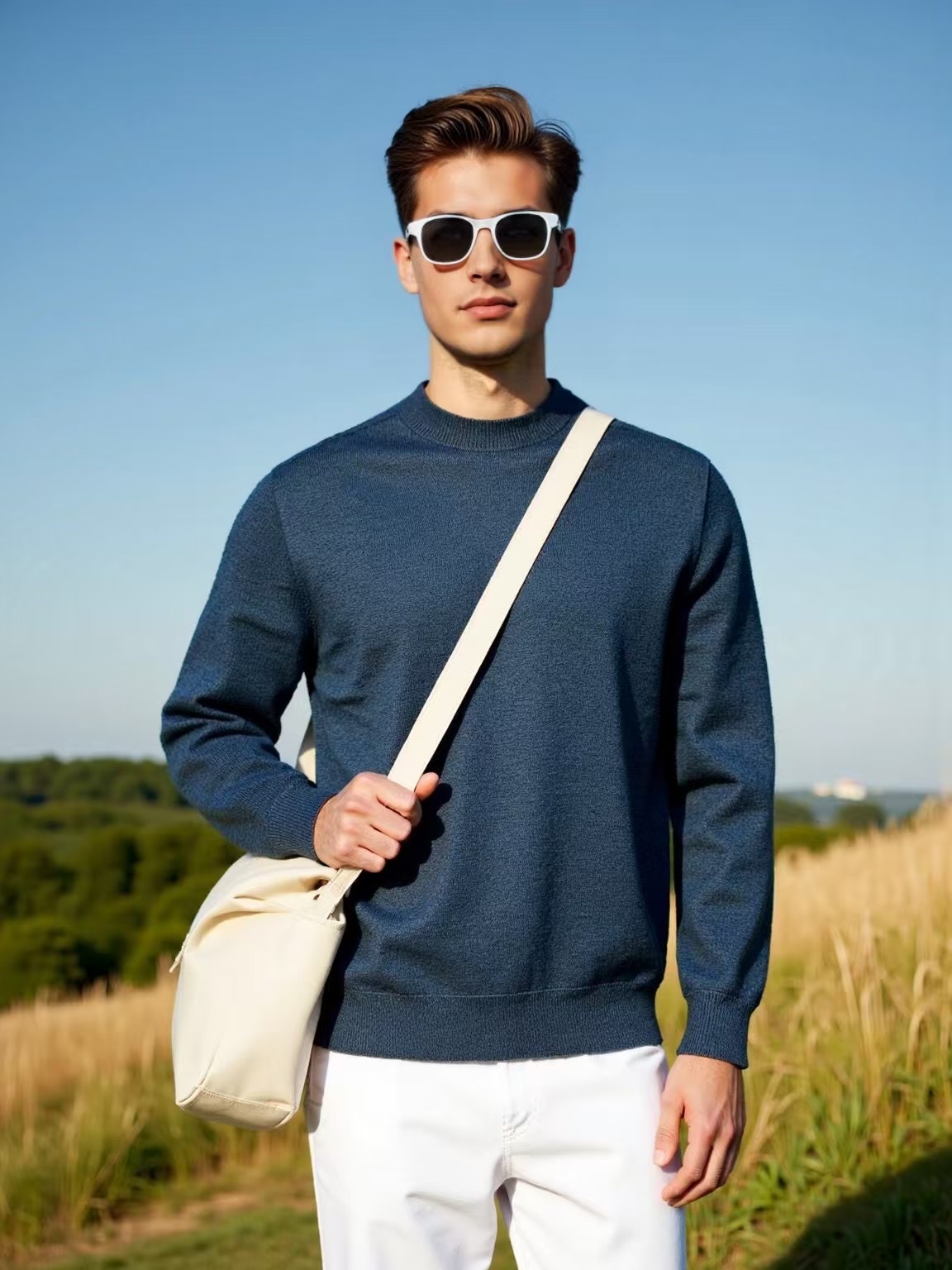 29173# 100%绵羊毛衫男半高领纯色宽松休闲针织亲肤毛衣秋冬