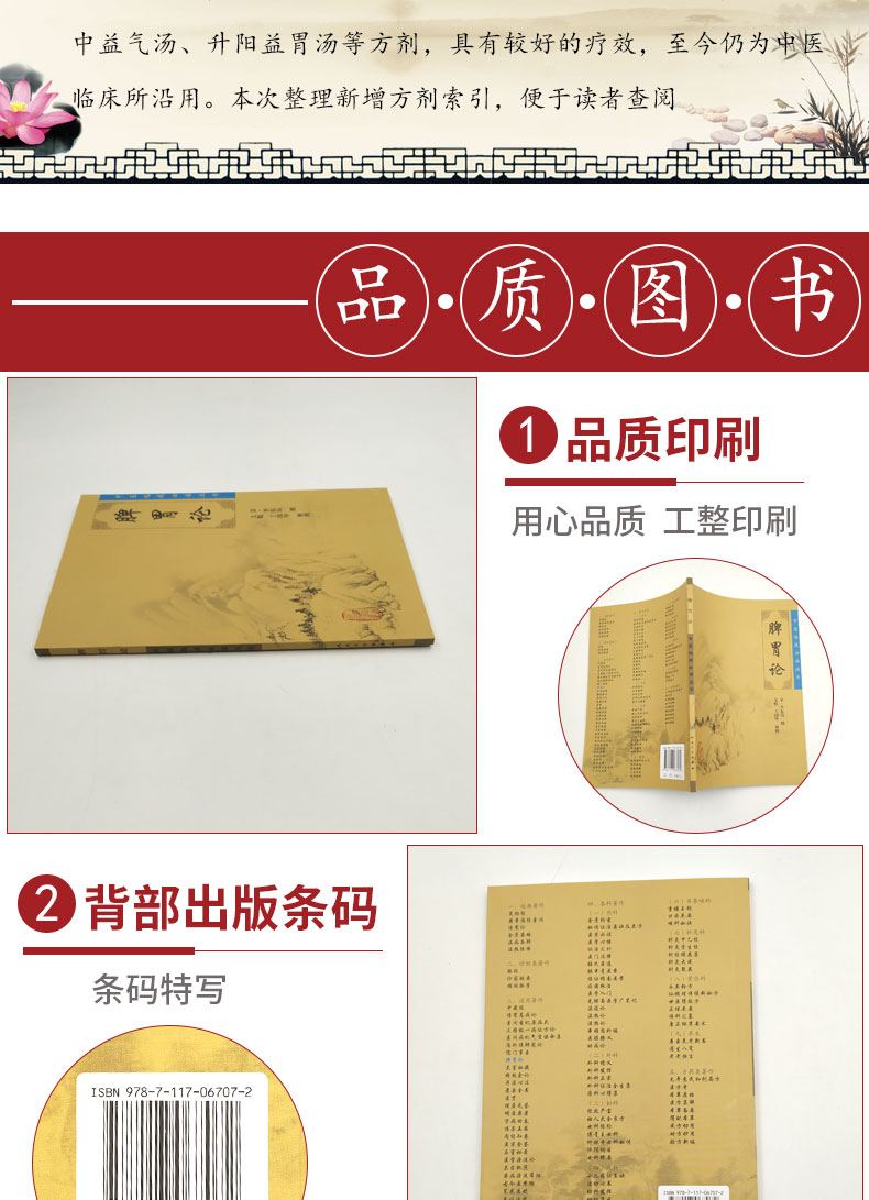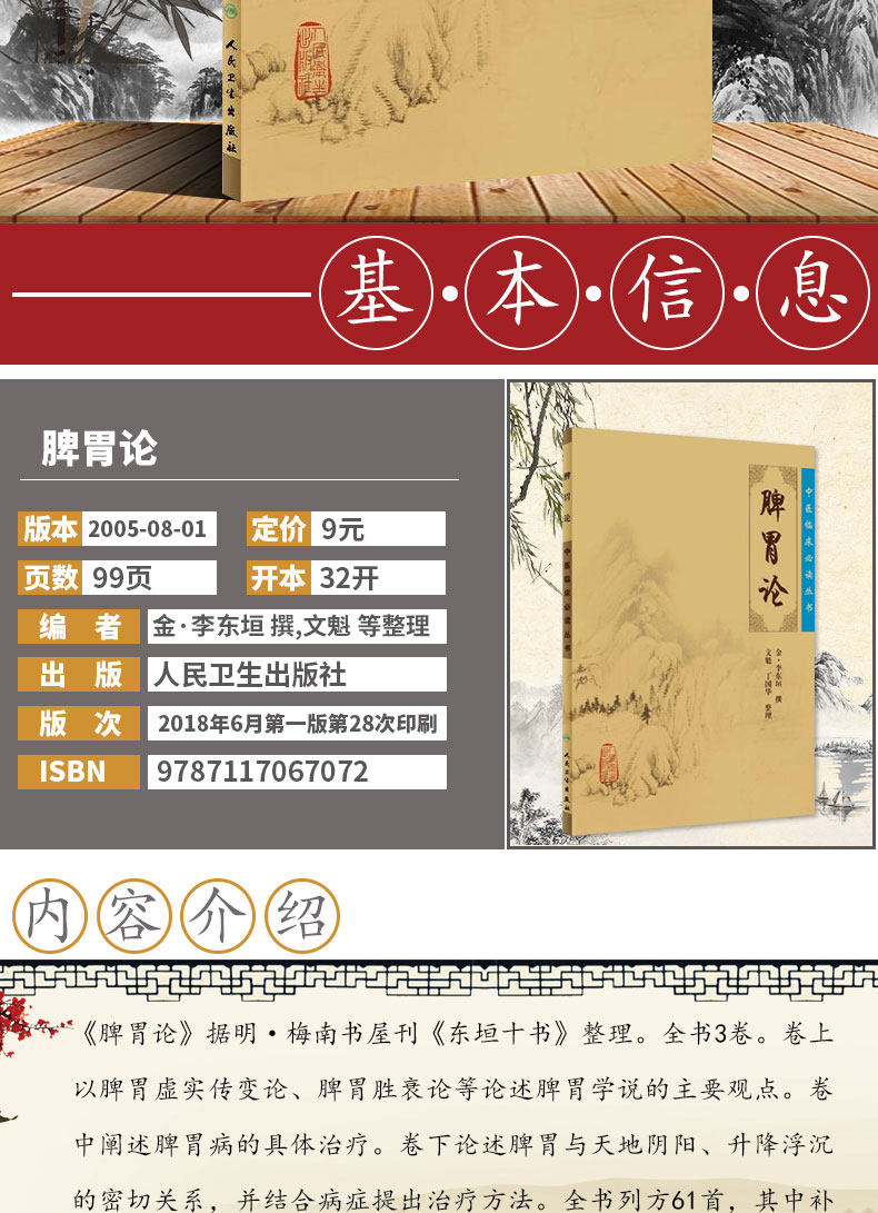 本书是金元四大医家李东垣的代表作,在浩如烟海的古医籍中占有重要的位置,是学习中医、从事中医临床工作的推荐阅读之书。李东垣对中医学术的发展贡献卓著,开创了疾病的内伤学说,他从损伤脾胃之气加以论述,独树一帜地形成了脾胃学派,对后世影响巨大;同时创立了许多独特的治疗方法,如补中益气、升阳散火、升阳除湿、益气活血、内托消肿等,尤其是甘温除热的法则,直到今天仍脍炙人口,疗效显著。