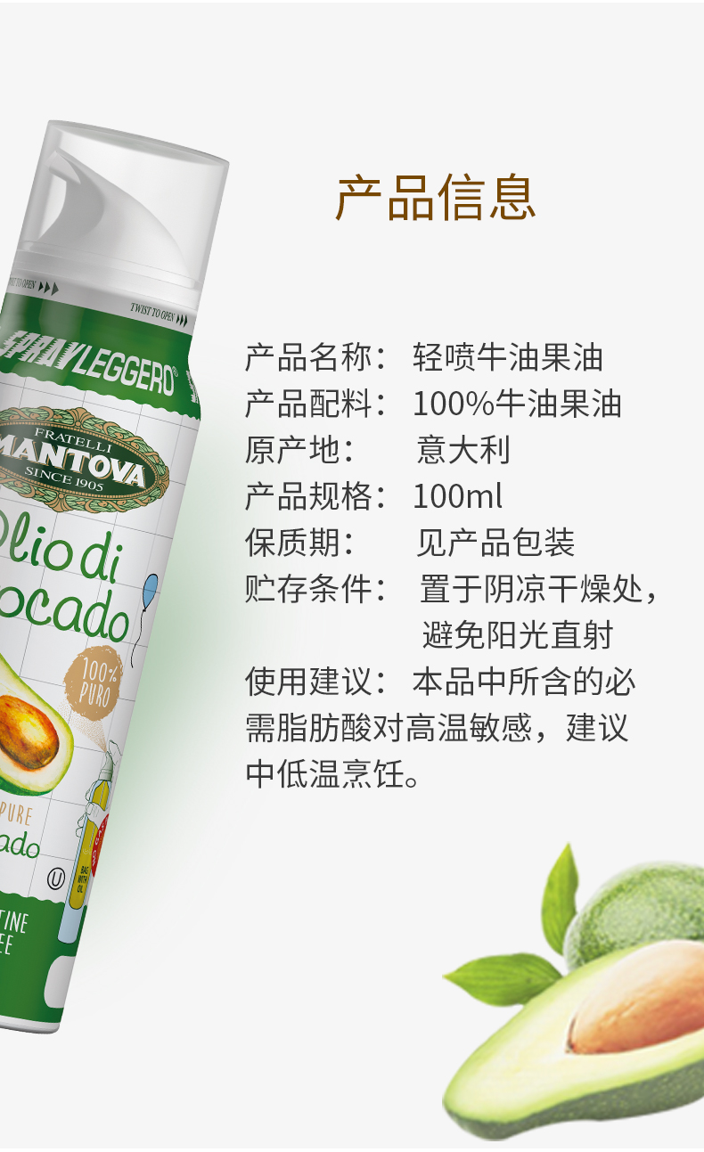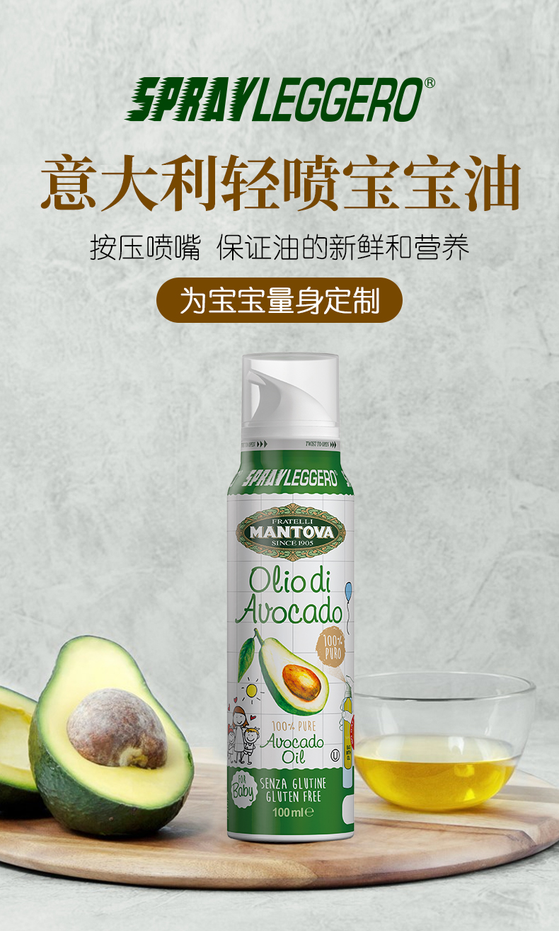 意大利进口MANTOVA轻喷婴幼儿牛油果油100ml【曼陀法】