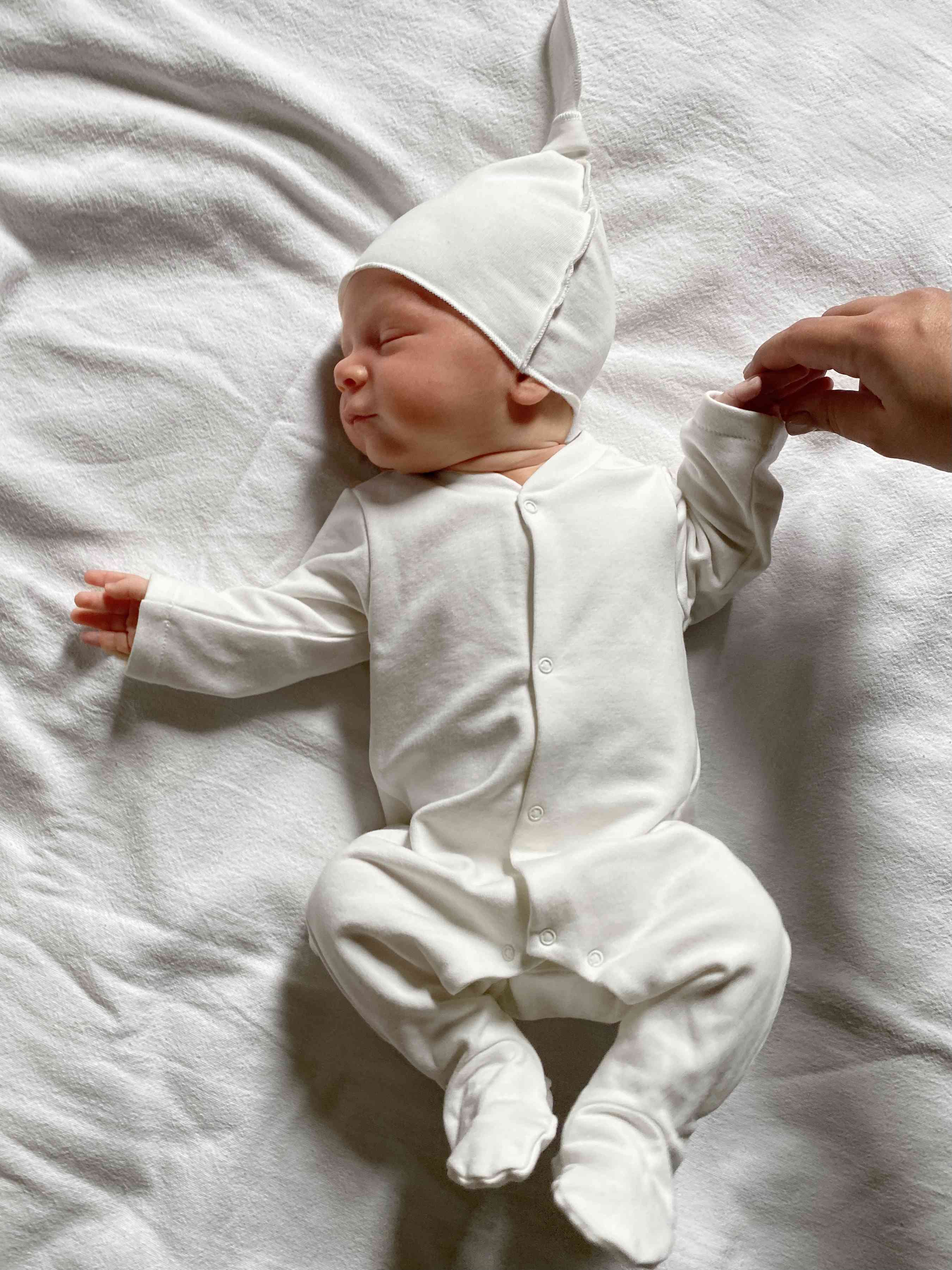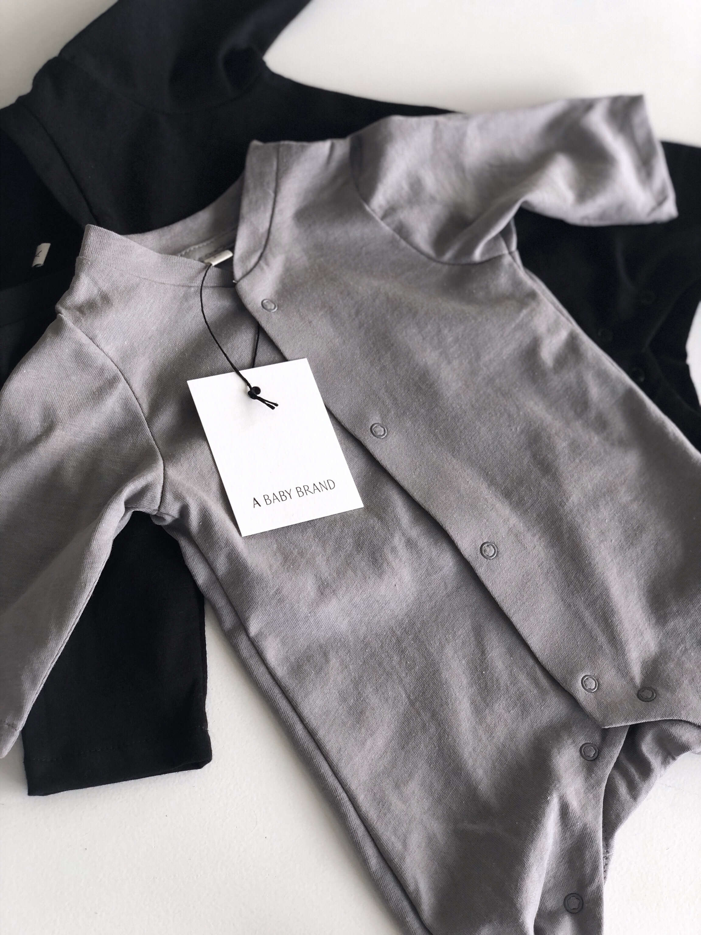 A basic brand 26ss新品 新生儿罗纹连体包屁衣胎帽围兜