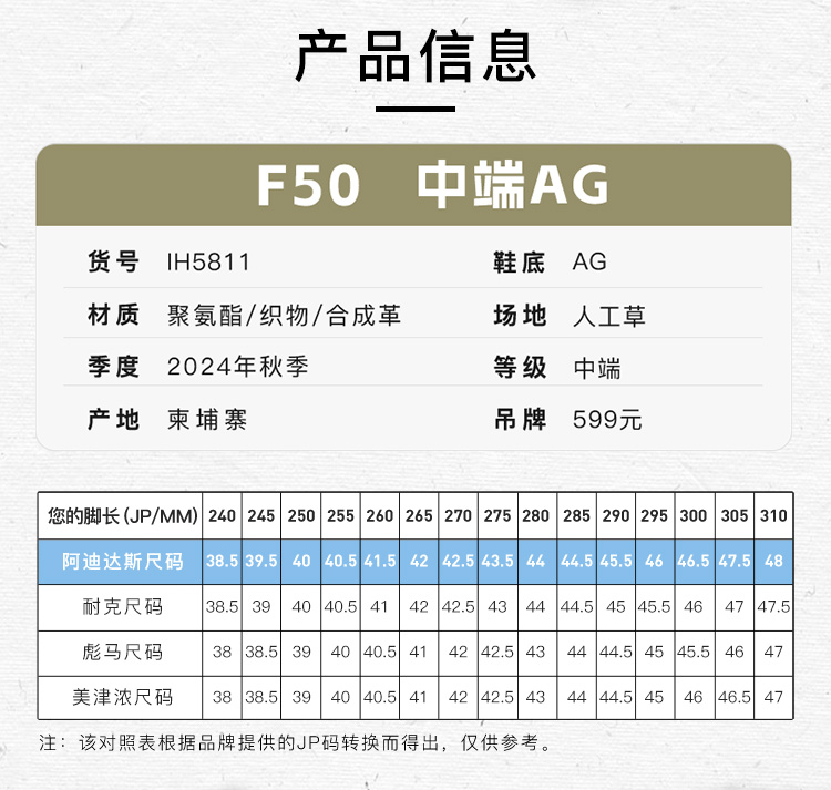 小李子ADIDAS阿迪达斯F50 LEAGUE中端AG短钉成人足球鞋男IH5811