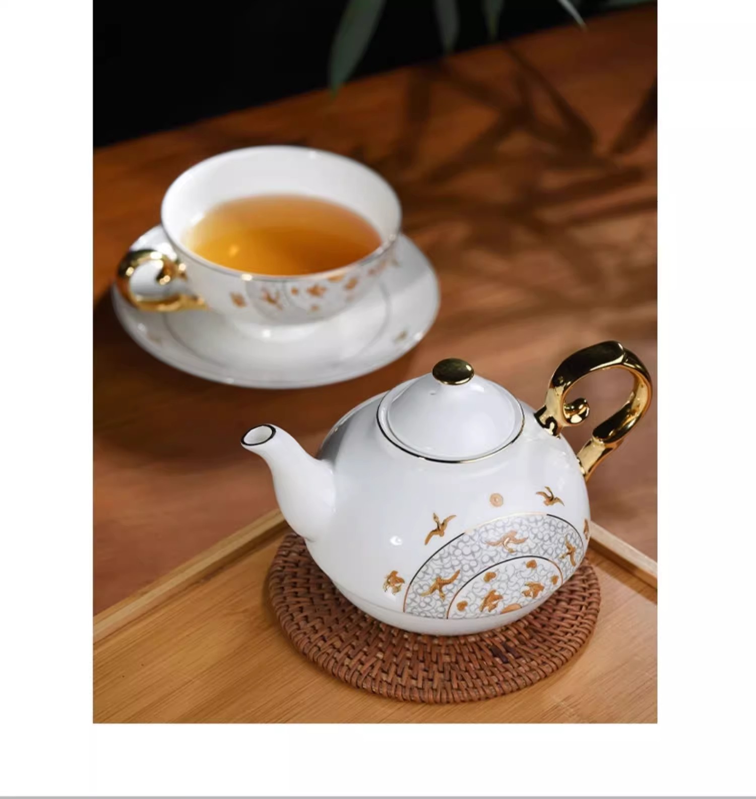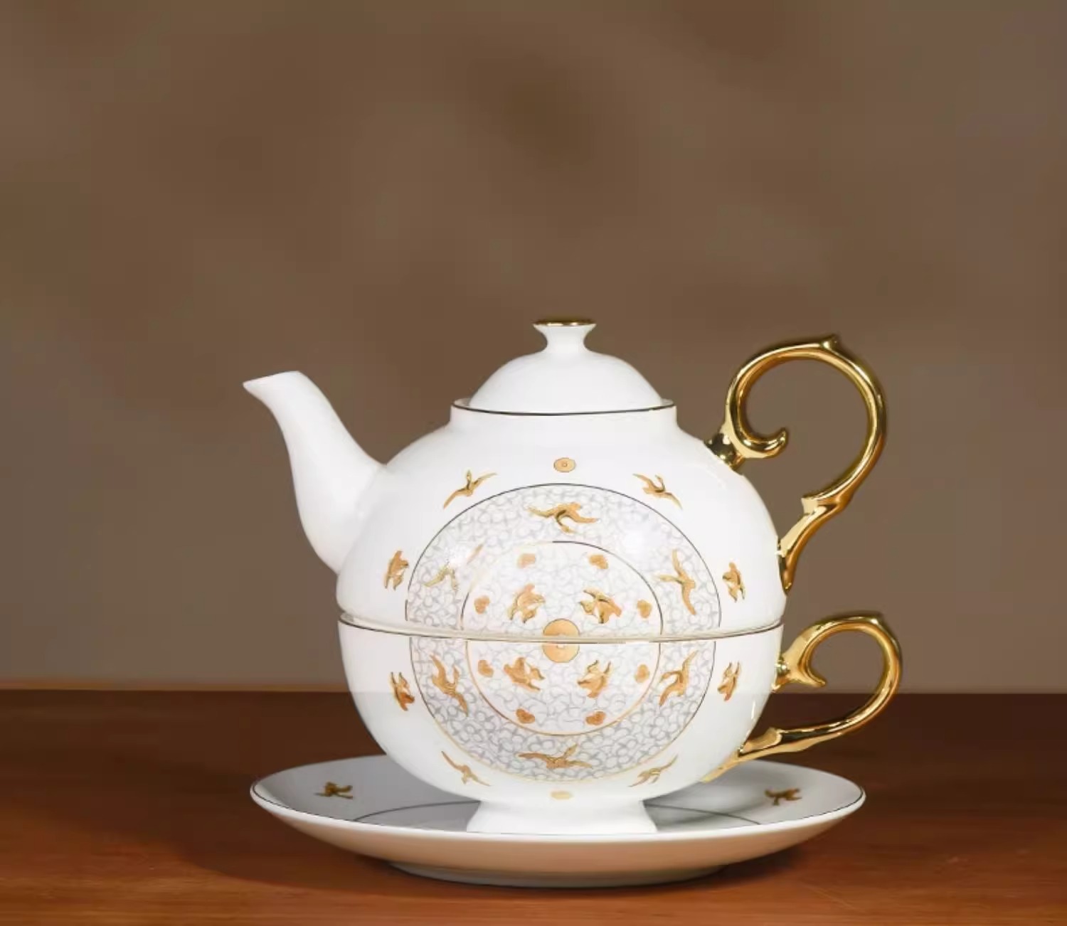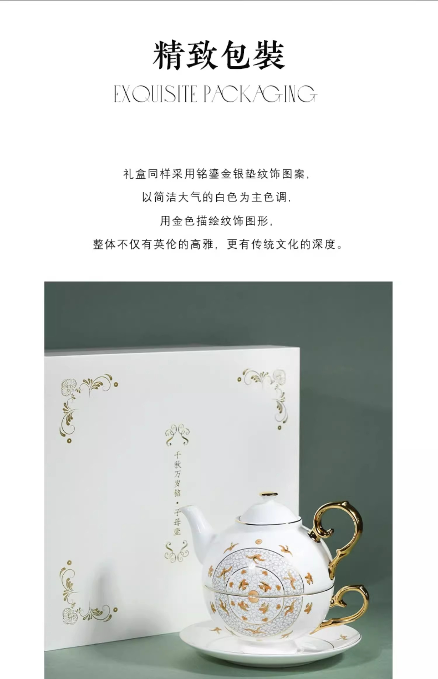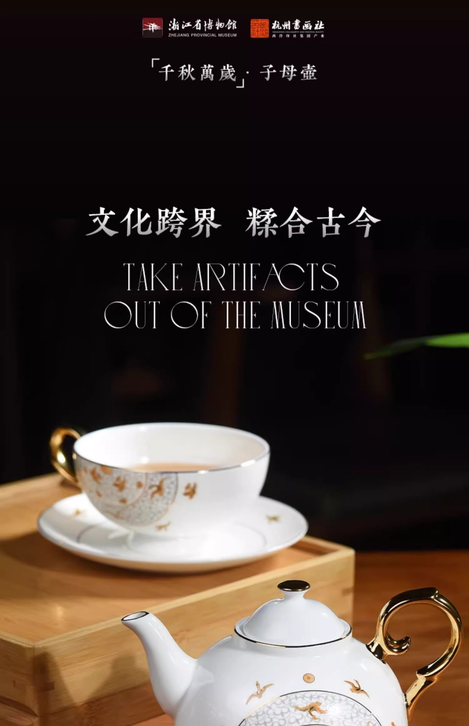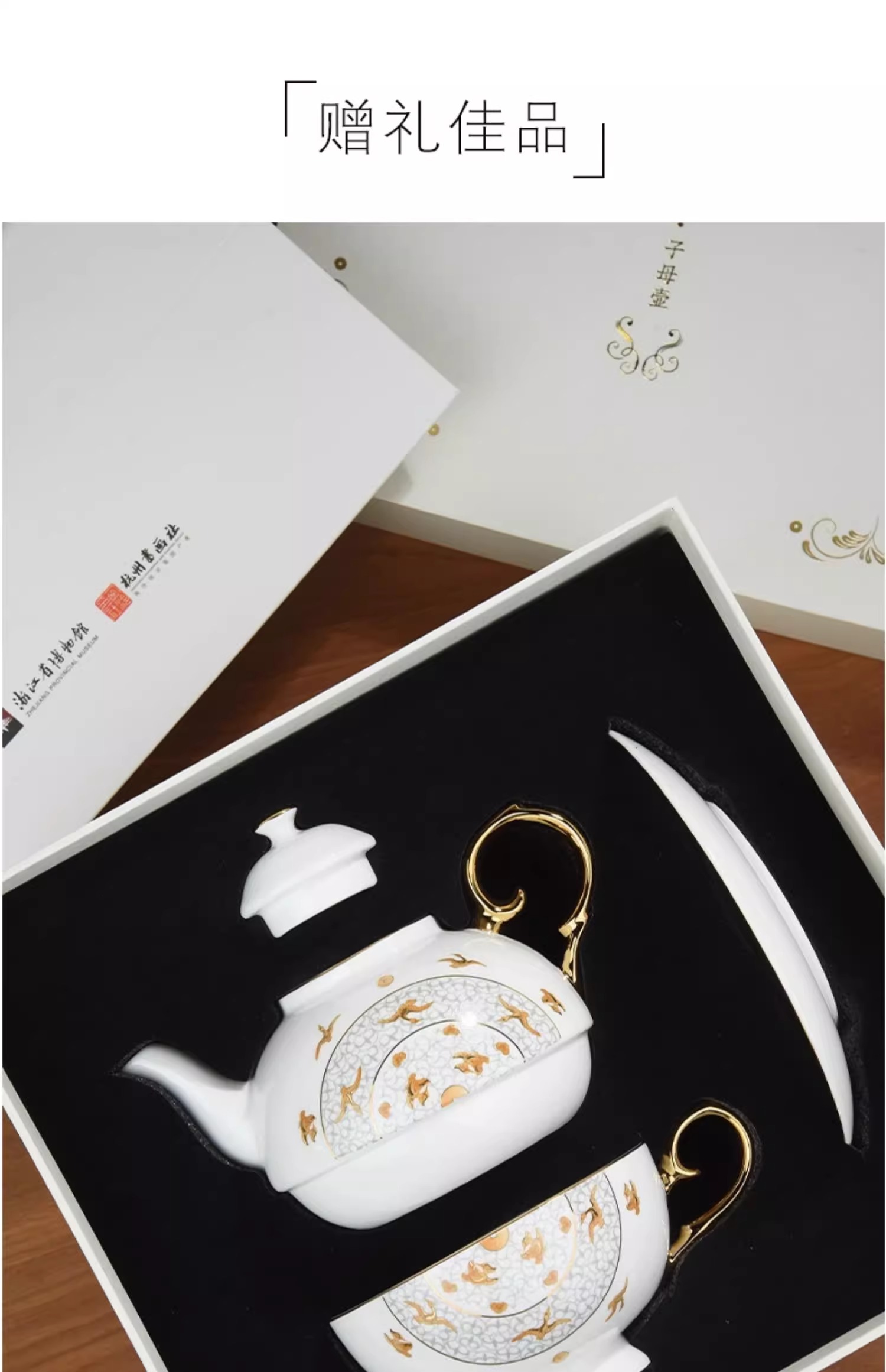 西泠印社杭州书画社浙江博物馆千秋万岁子母壶套装骨质瓷英式下午茶壶碟杯套装商务茶具礼品