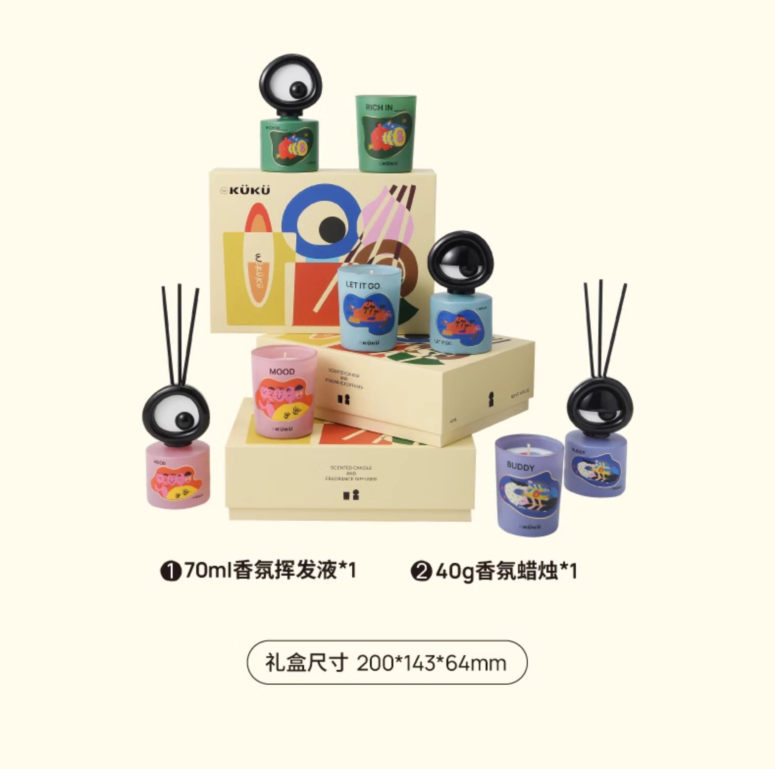 WEKUKU 大眼仔香氛礼盒 无火香薰礼盒可爱香氛蜡烛创意生日礼品