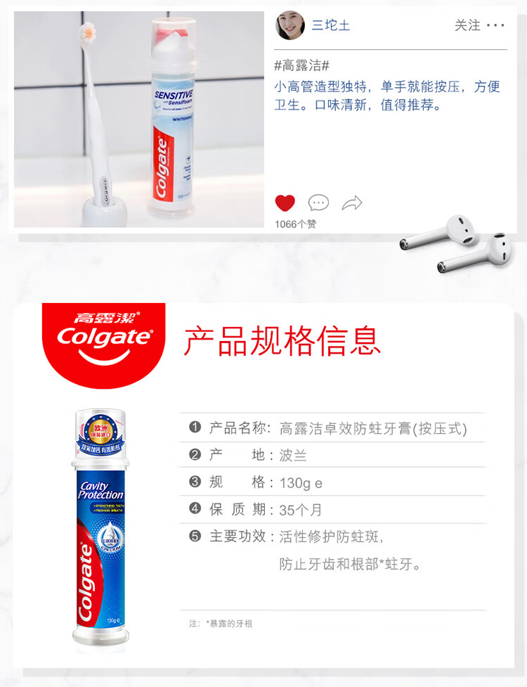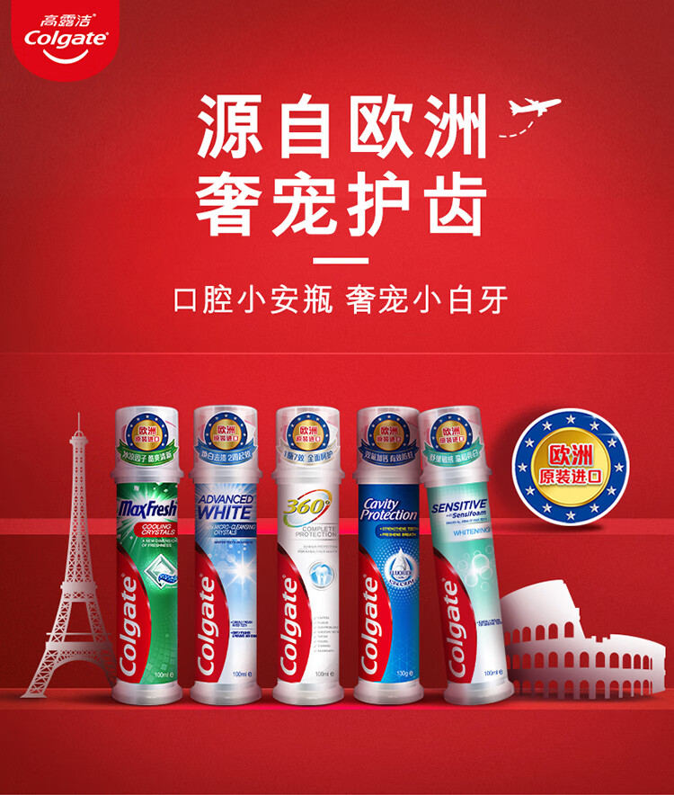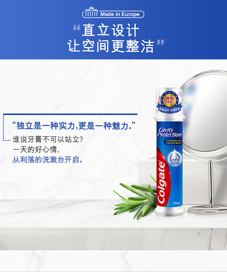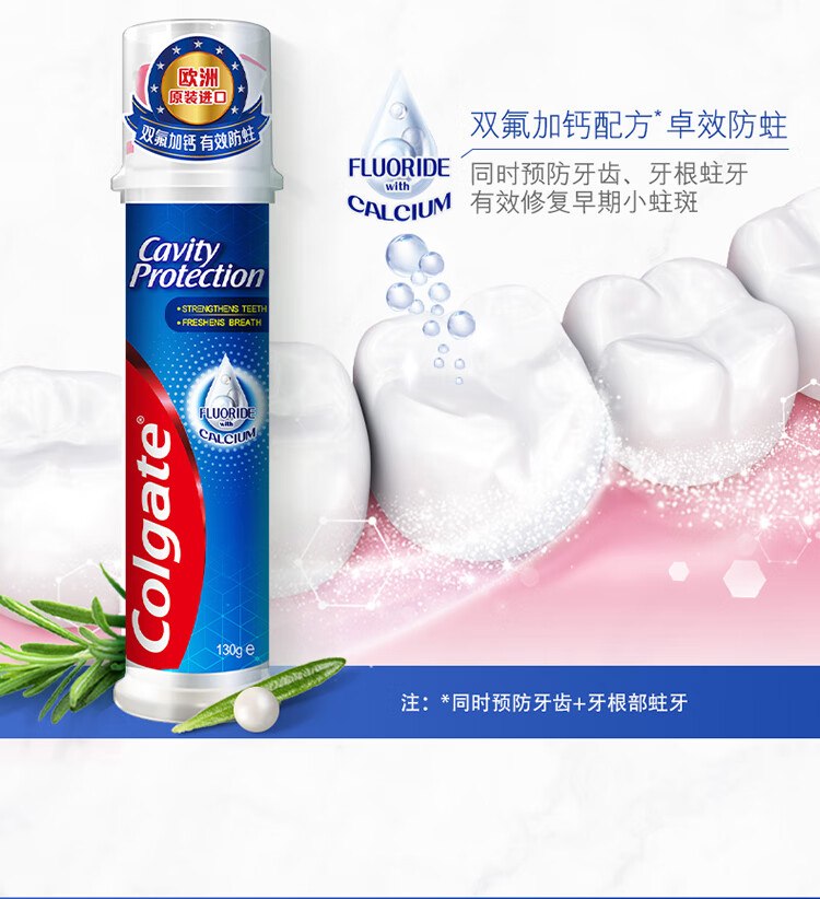 高露洁 清新薄荷直立按压式卓效防蛀牙膏 130g/瓶
