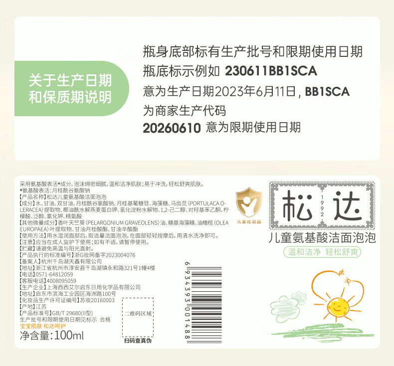 松达儿童氨基酸洁面泡泡100ml