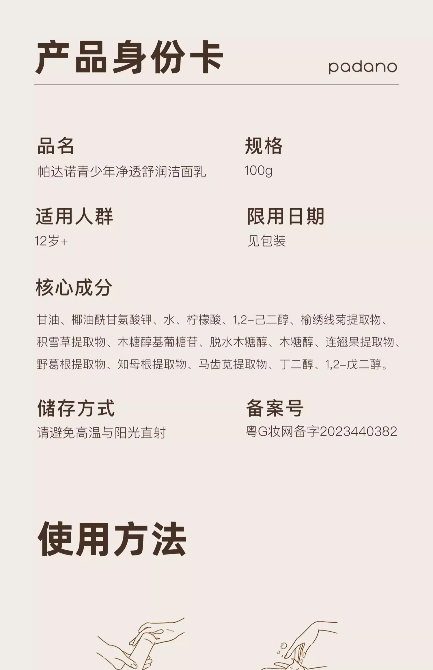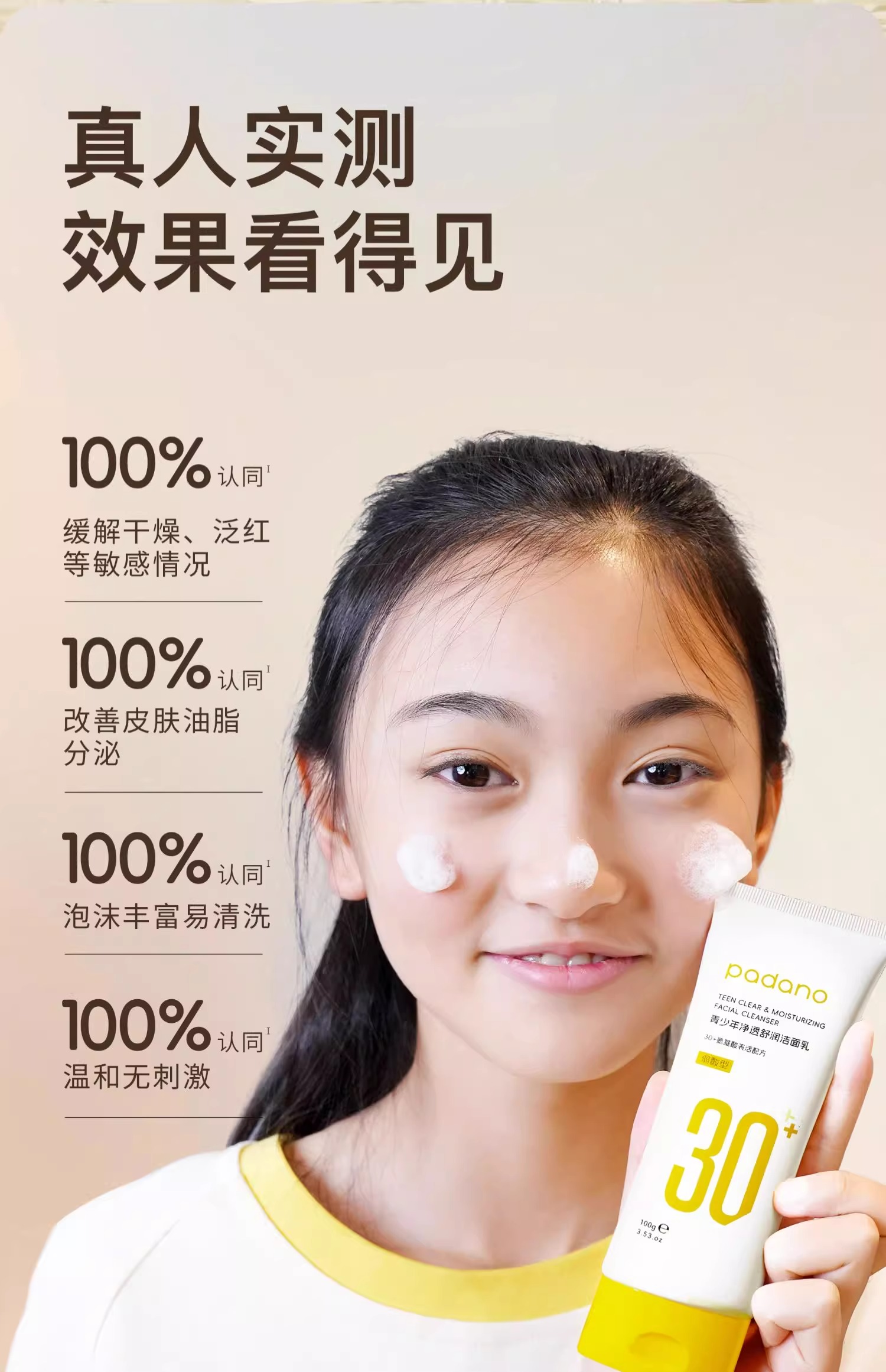 帕达诺12岁+青少年净透洁面乳100g