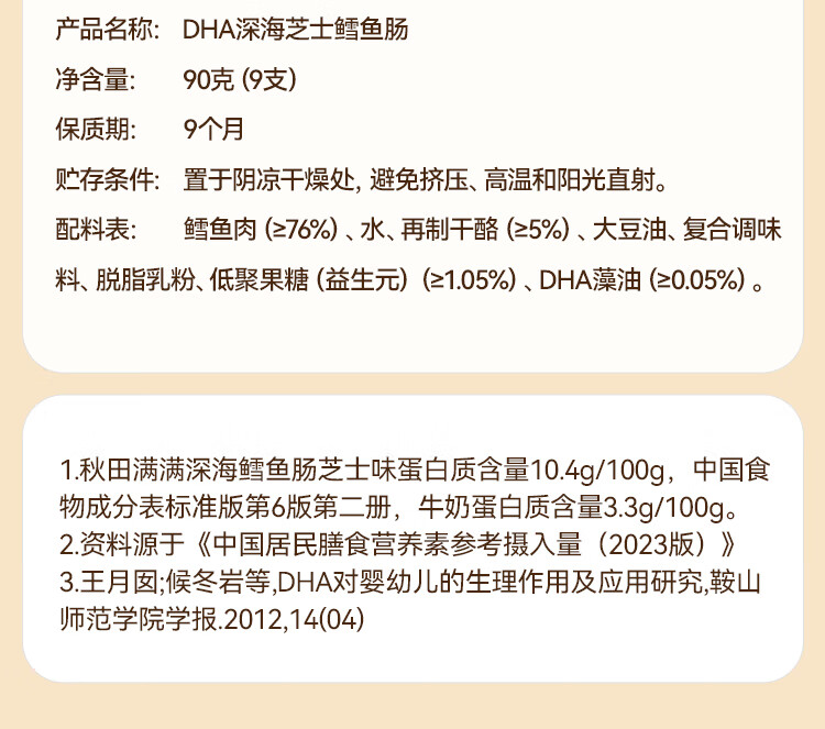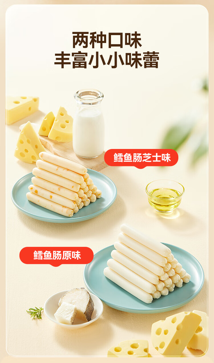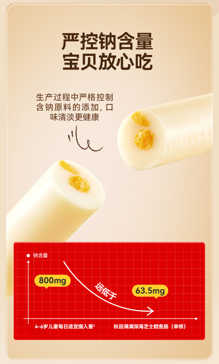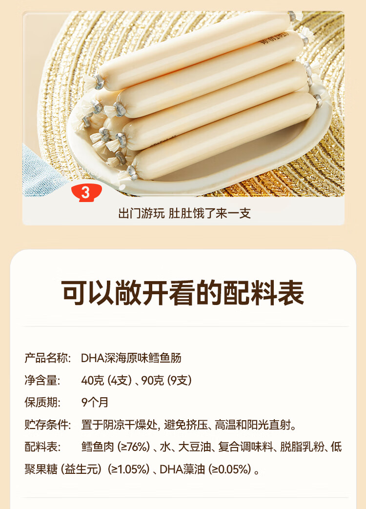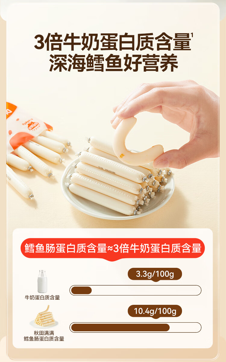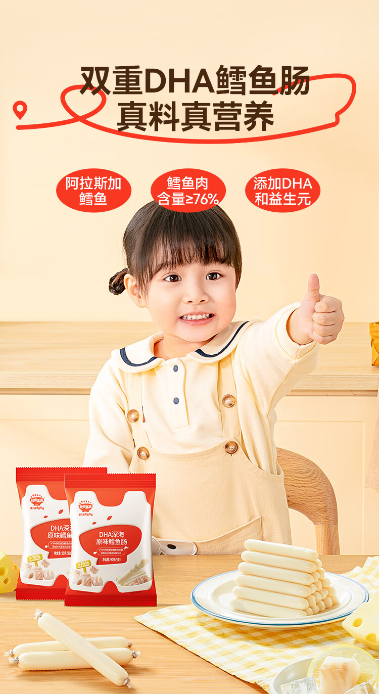 秋田满满--DHA深海原味鳕鱼肠90g≥76%阿拉斯加鳕鱼含量