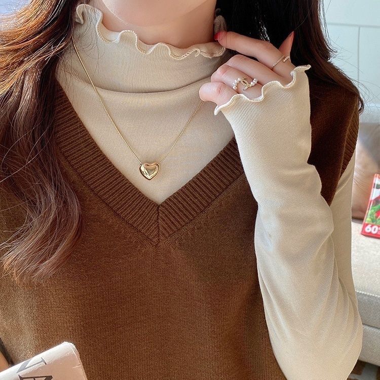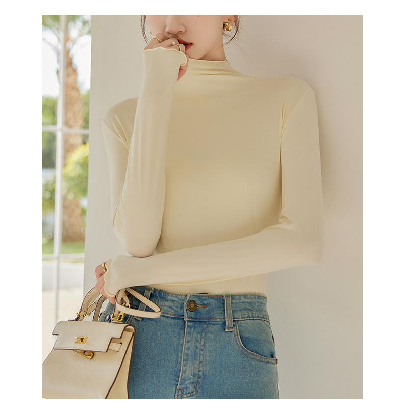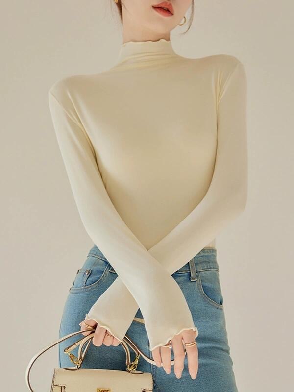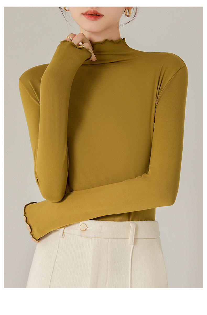 59.9抢3件!超值速抢【温柔慕斯德绒木耳边打底衫】手感真的巨巨巨软糯秋冬穿着率No.1 上手质感没的说 无束缚感舒适柔软不紧绷 秋冬打底衫女木耳边半高领新款德绒上衣内搭修身上衣长袖纯色优雅