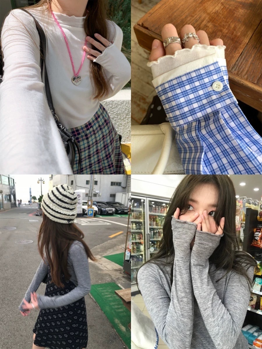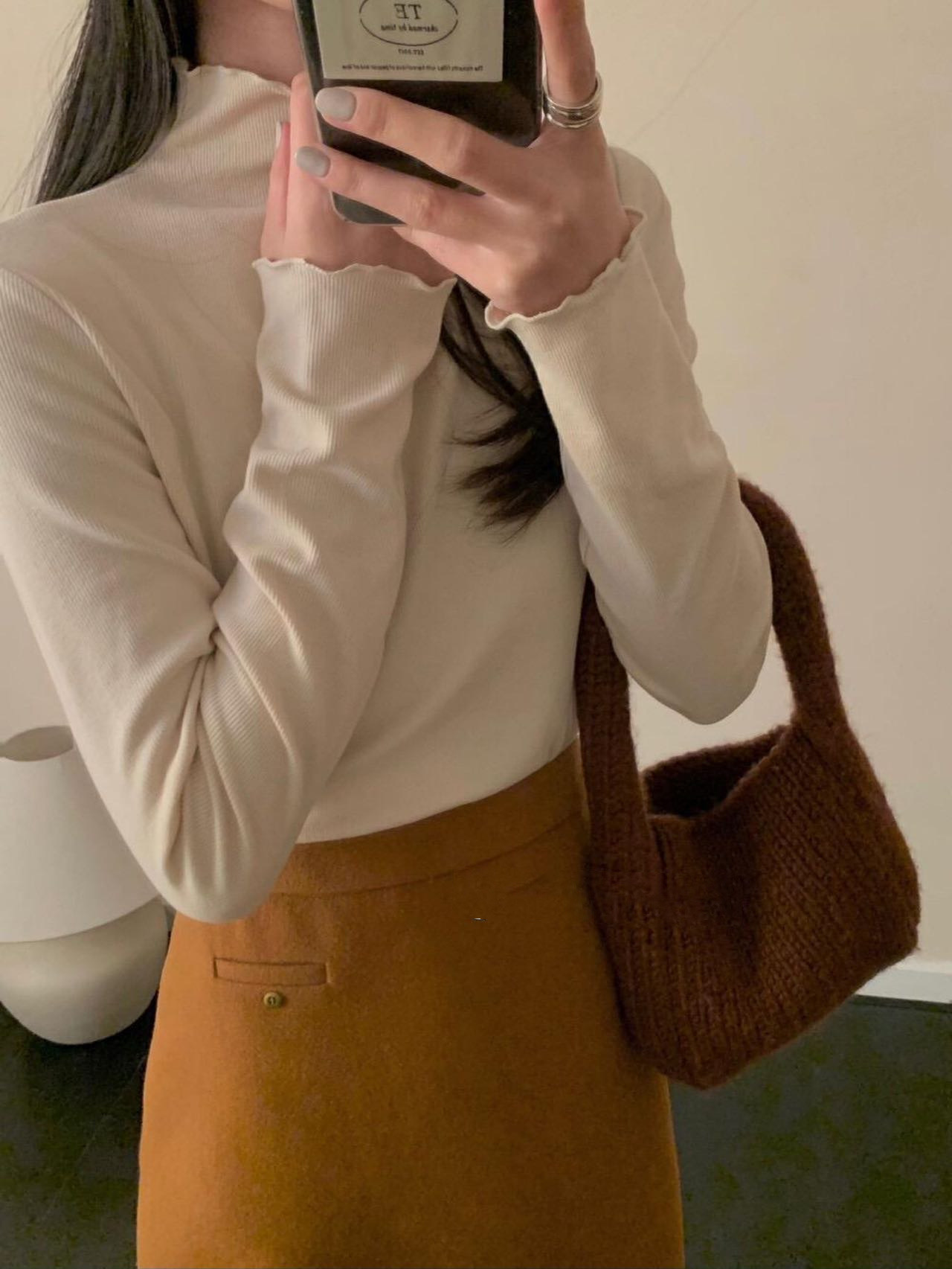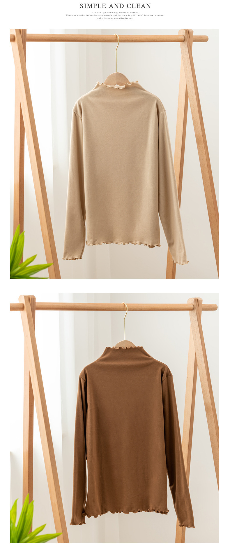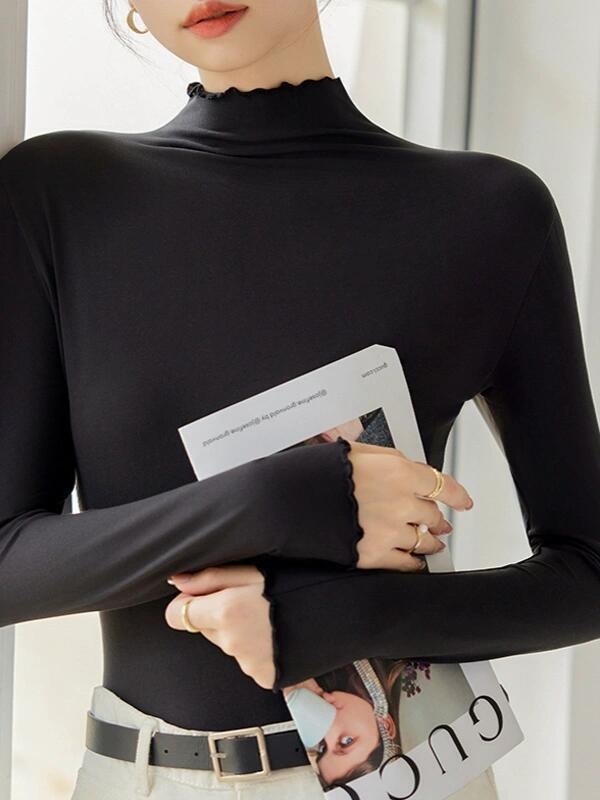 内搭界的万能打底衫 上身瞬间提升衣品,精致又高级 单穿/做打底都好看,关键面料还很柔软亲肤 木耳边领的设计不挑人又减龄 半高领增加了一丝温暖气息随性又自信的穿着质感,温度和风度都要了