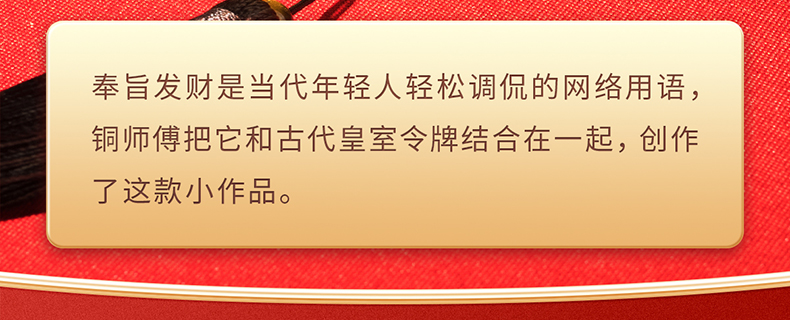 铜师傅《奉旨发财》客厅桌面铜挂件 招财进宝令牌 家居装饰工艺品