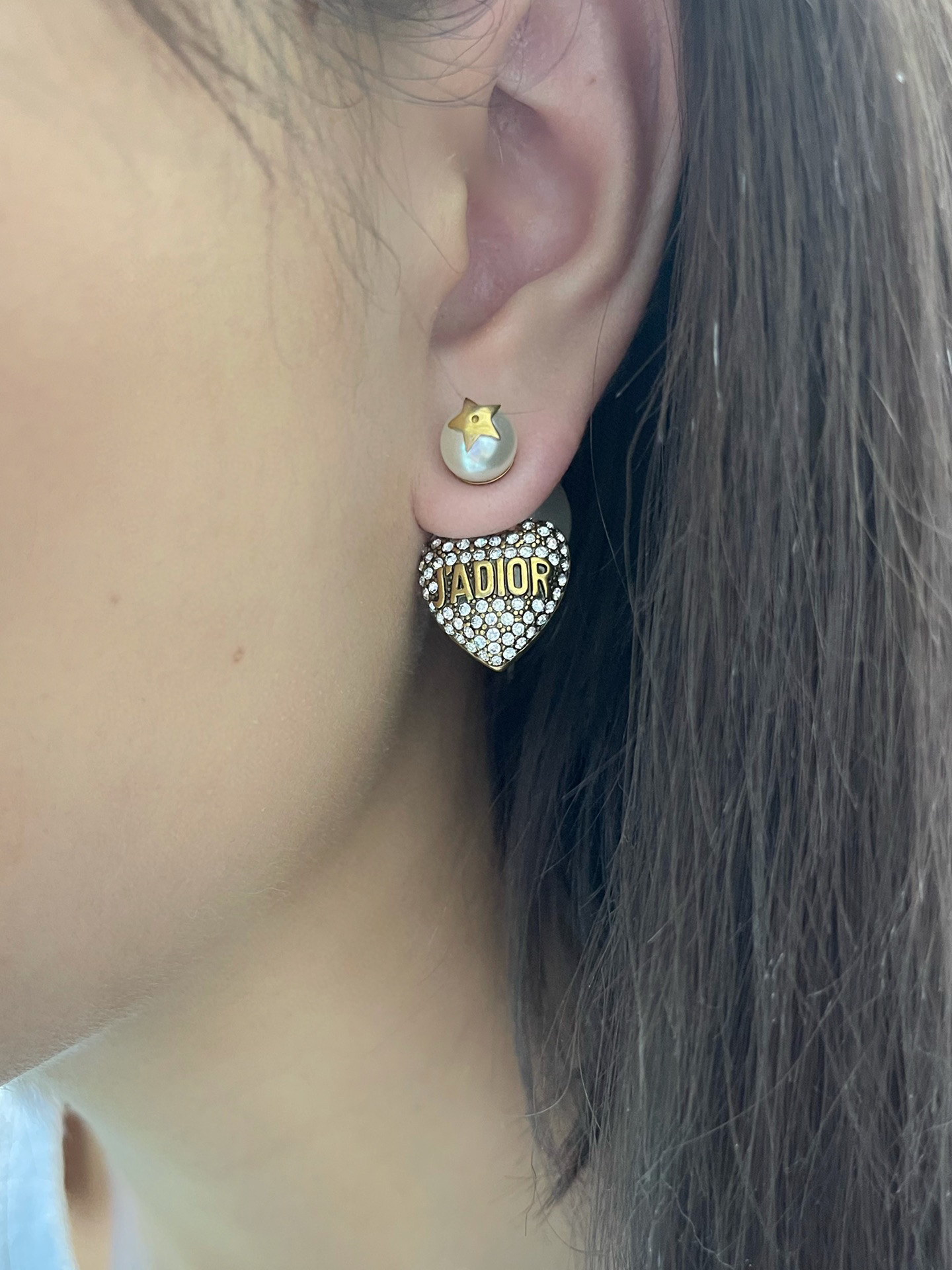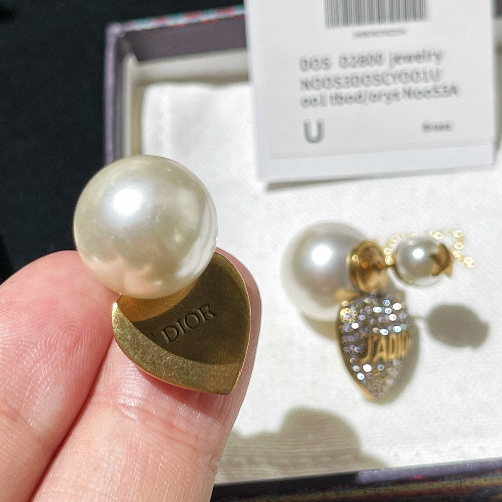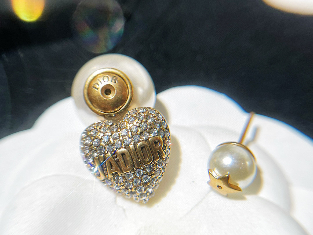 DIOR迪奥桃心满钻珍珠耳钉耳环