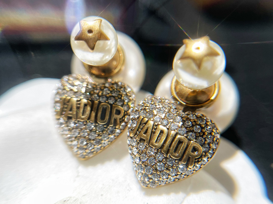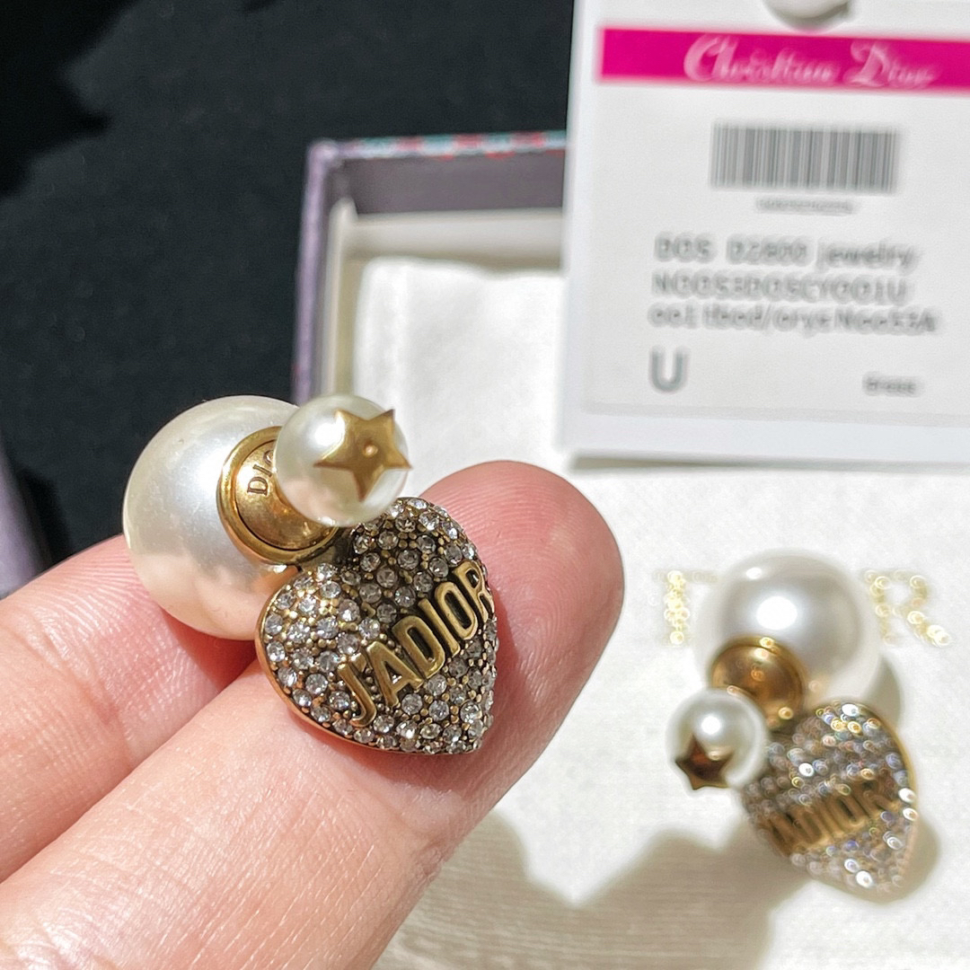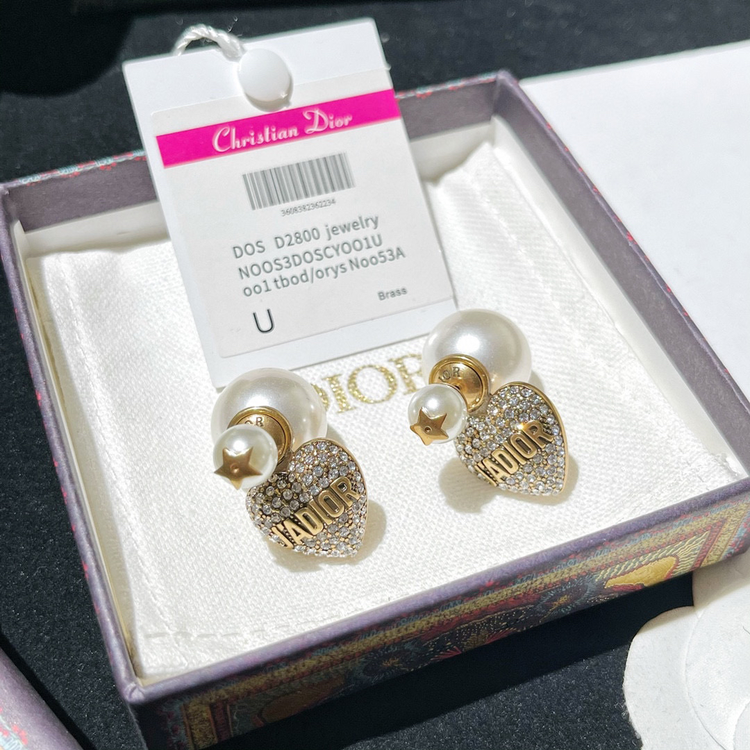 ☀2021新款DIOR迪奥桃心满钻珍珠耳钉耳环