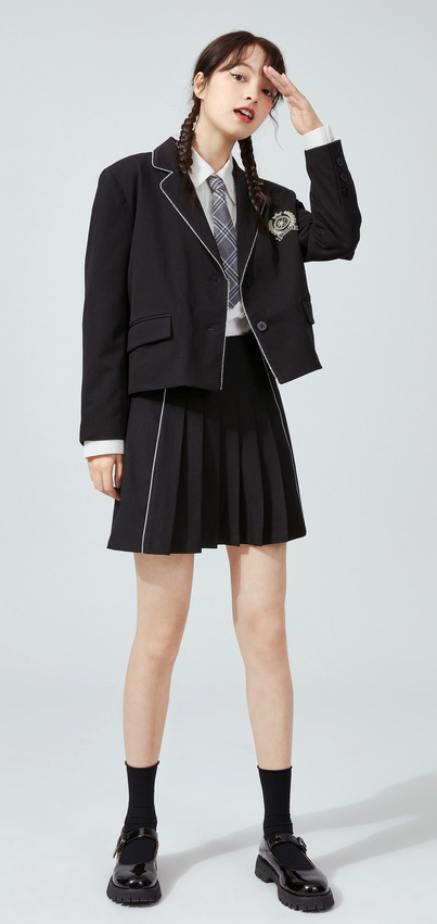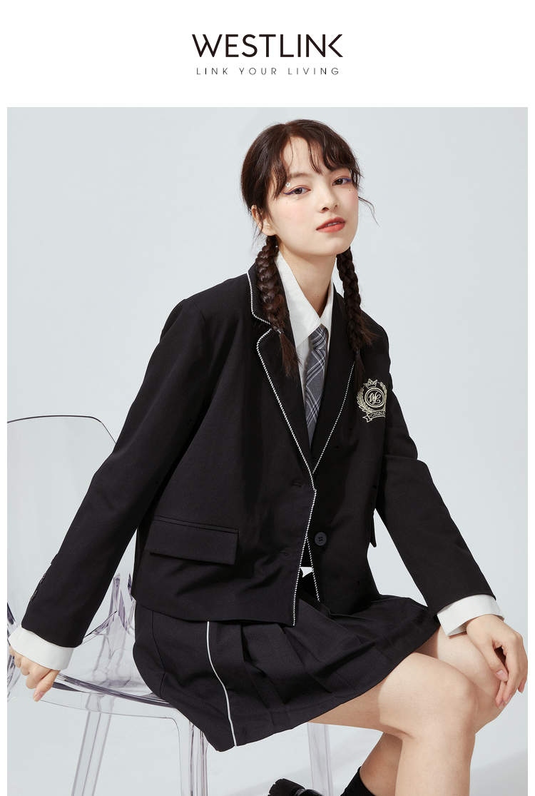 西遇小西装外套女2021年春新款jk学院风短款百搭休闲西服D0210123