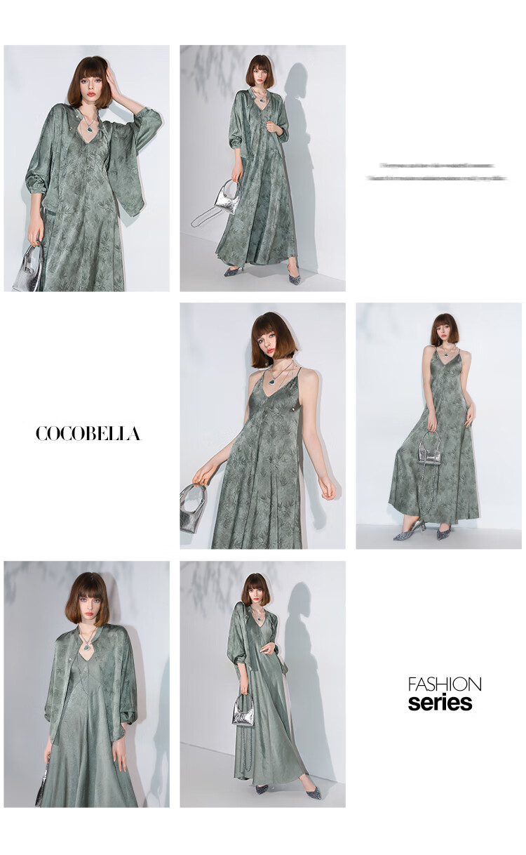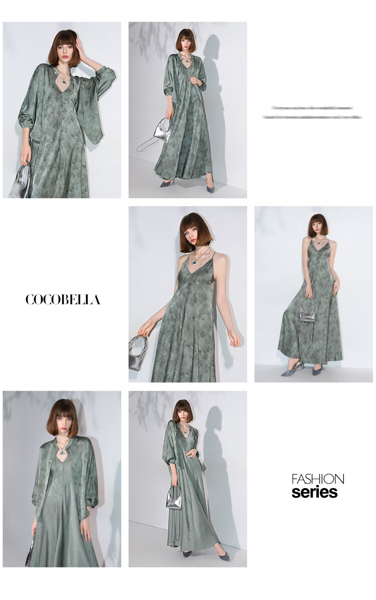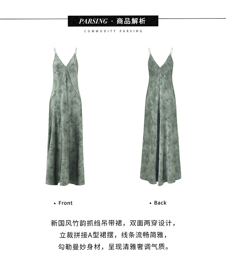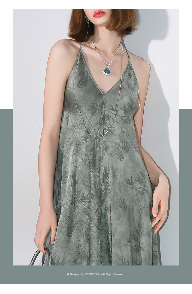 COCOBELLA[只此青绿]新中式印花吊带裙双面穿连衣裙FR0052-2