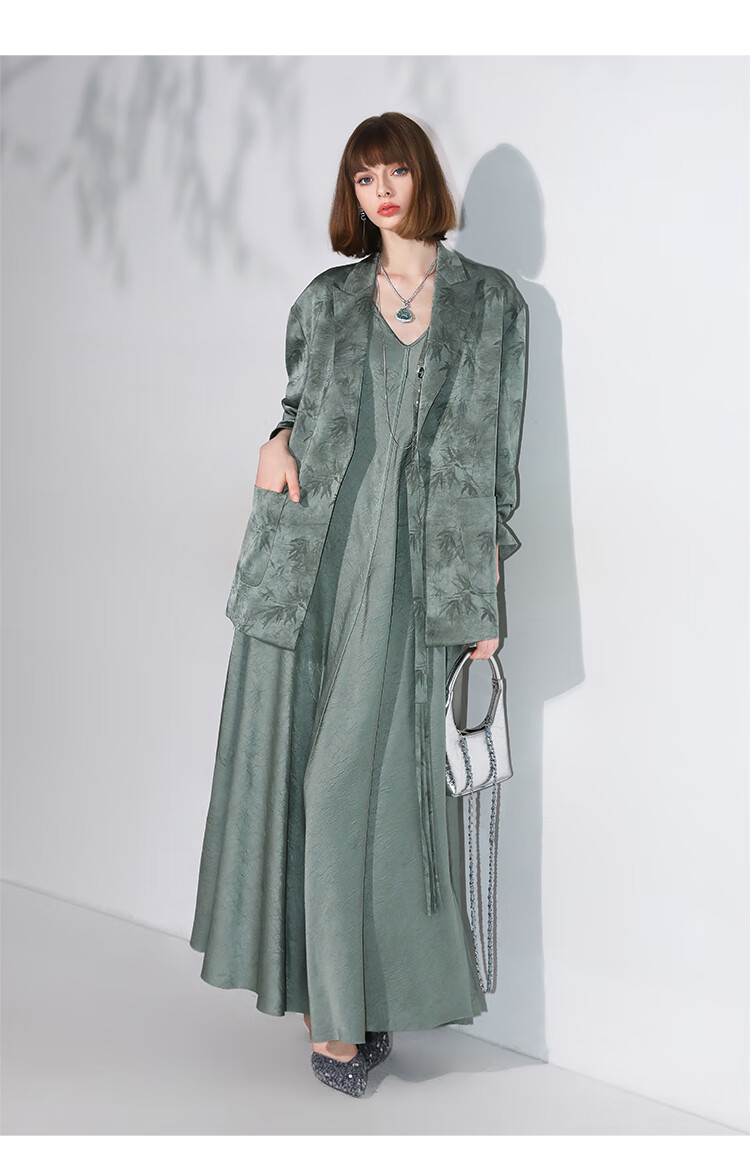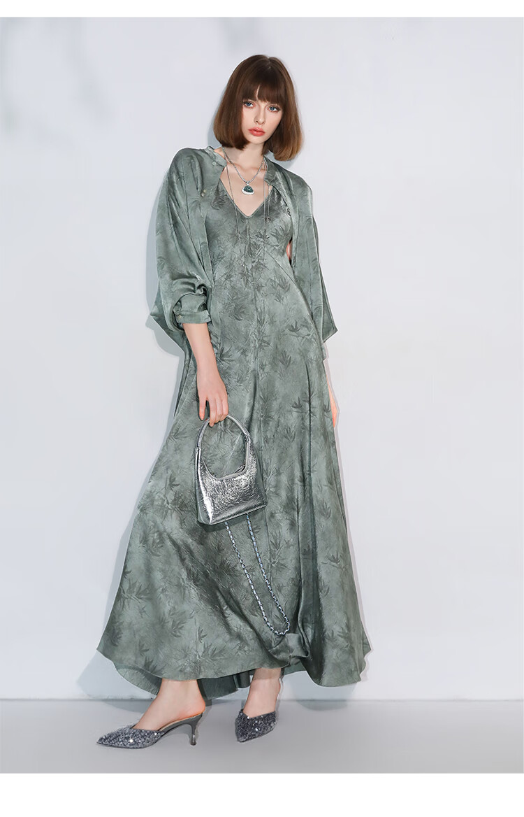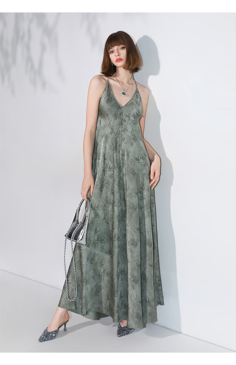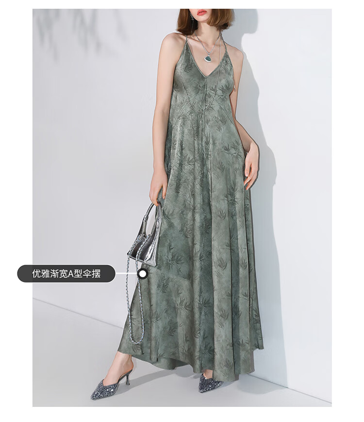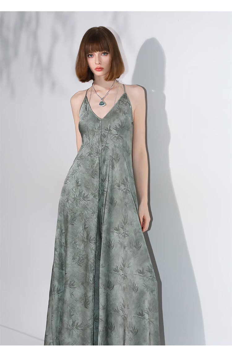 COCOBELLA[只此青绿]新中式印花吊带裙双面穿连衣裙FR0052-2