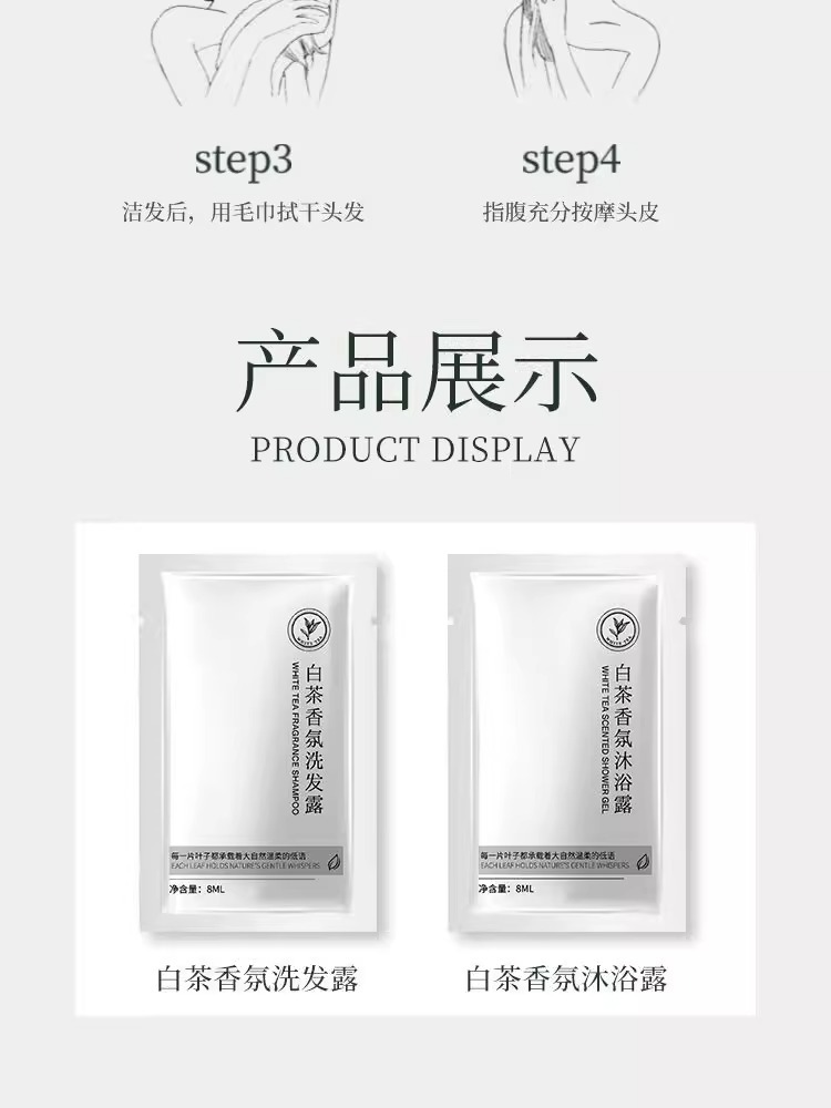 酒店白茶一次性袋装洗发沐浴酒店宾馆旅行便携小包洗发乳整箱批发 商品图4