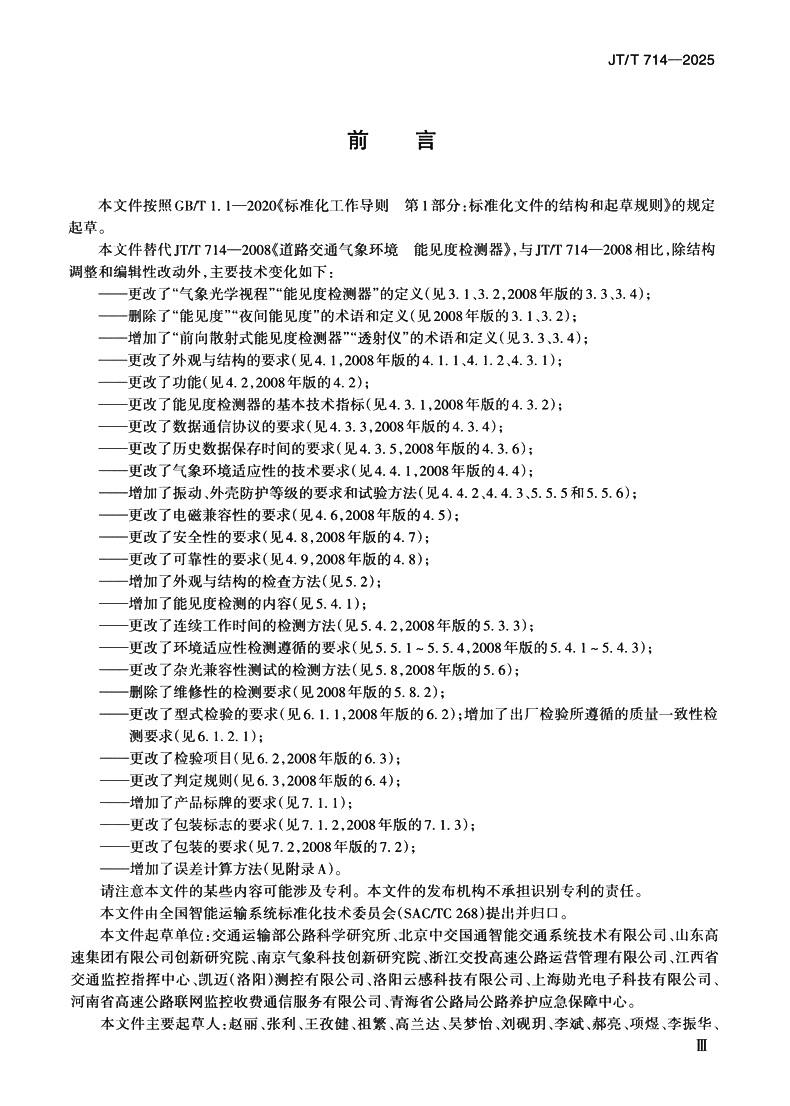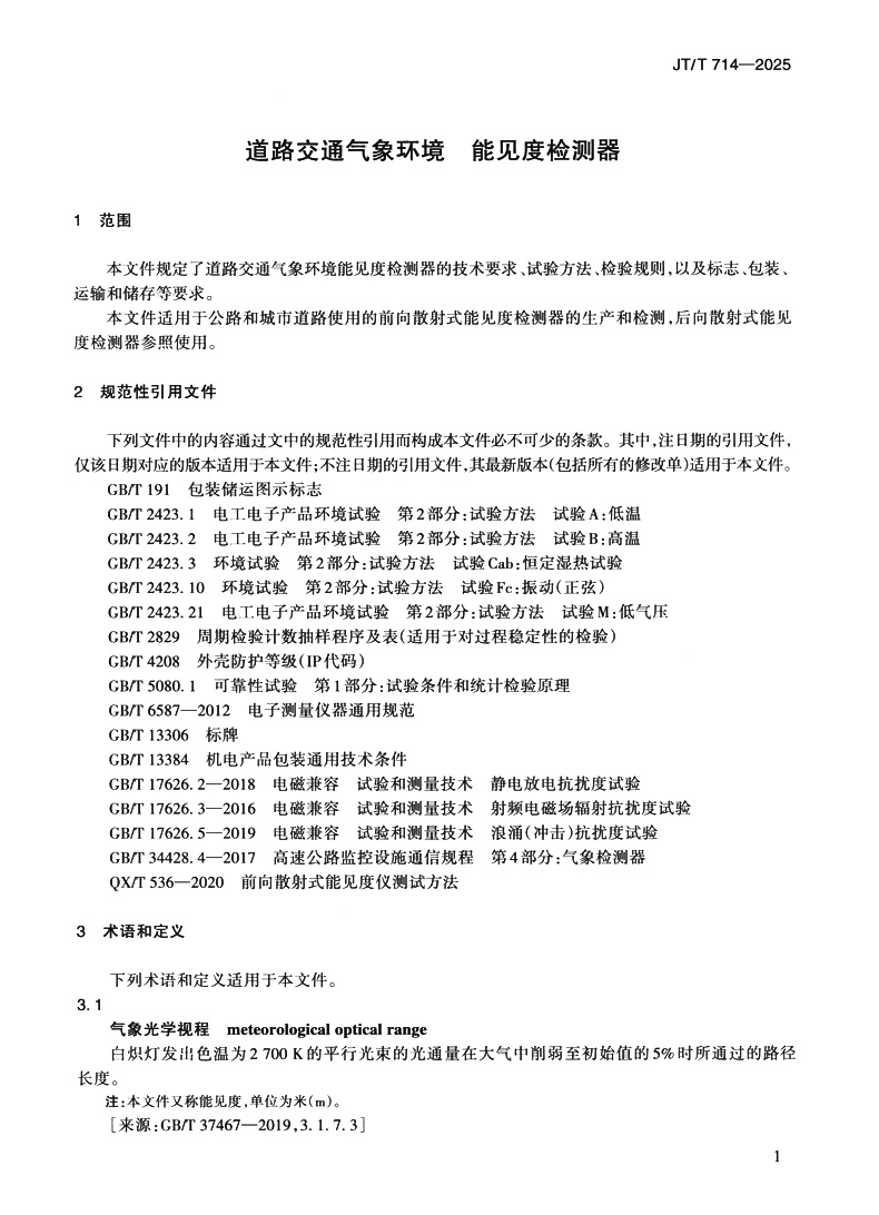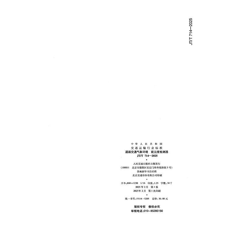 书名:道路交通气象环境 能见度检测器(JT/T 714—2025)