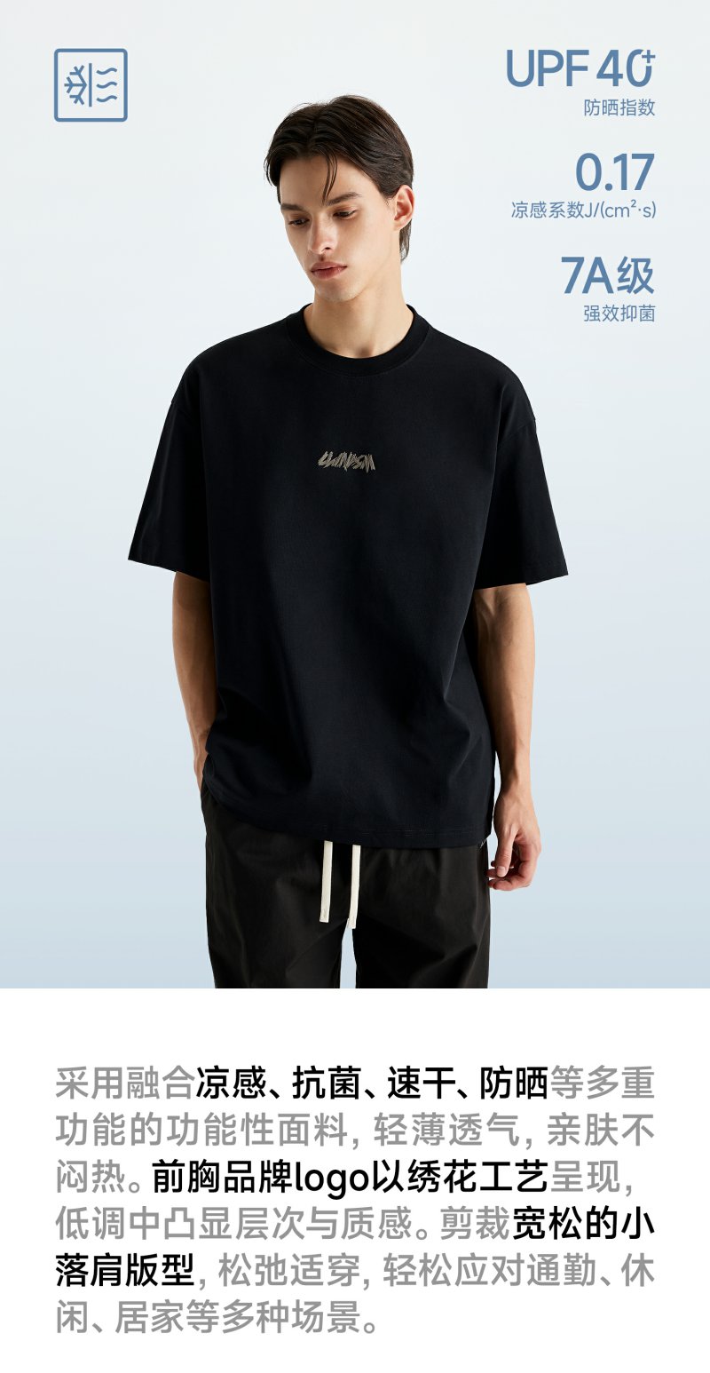 CHINISM赤尘 绣花logo凉感抗菌短袖T恤男2025夏季速干防晒半袖
