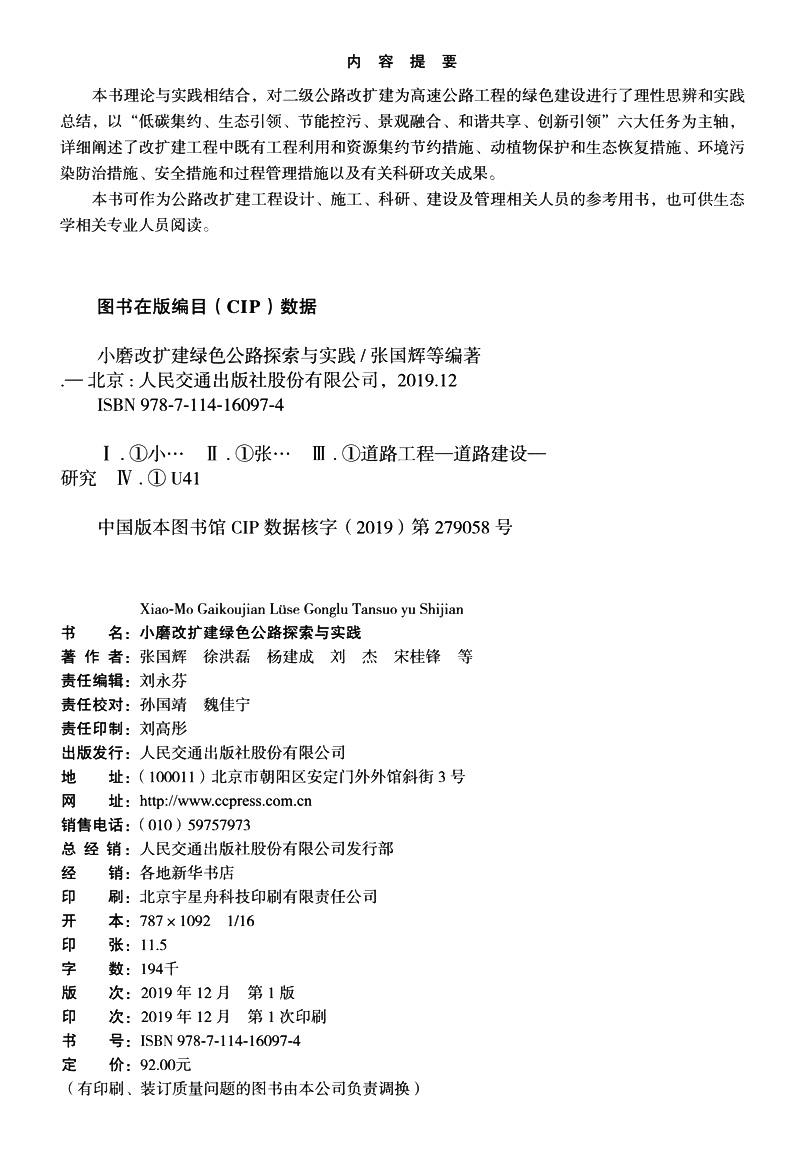 书名:小磨改扩建绿色公路探索与实践