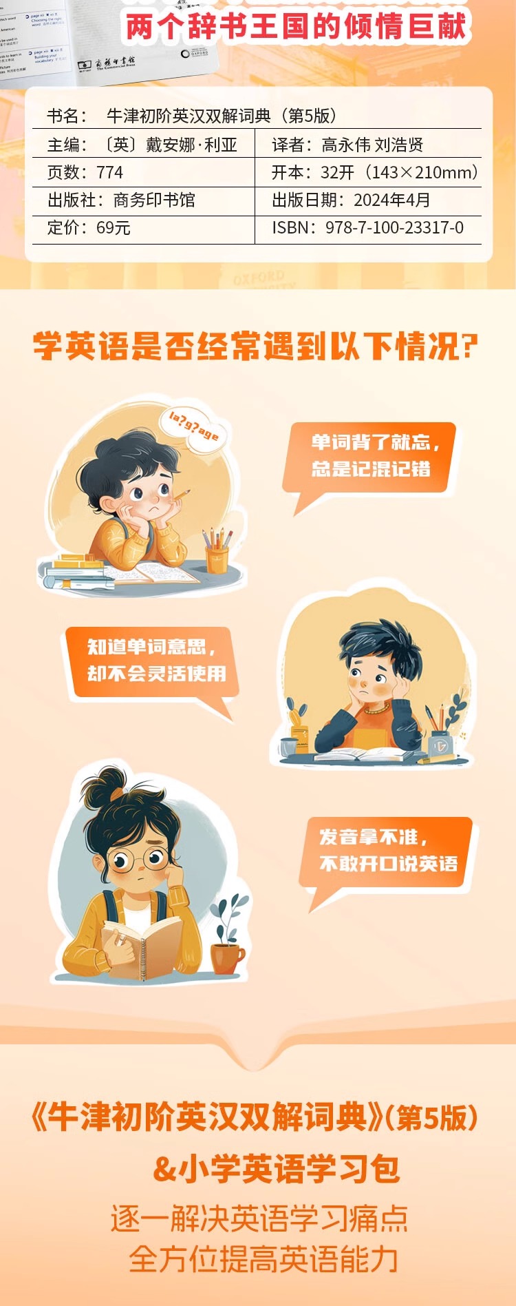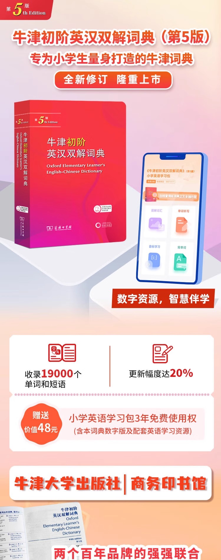 牛津初阶英汉双解词典第5版 英语词典初阶第五版 商务印书馆 中小学生双解词典字典工具书