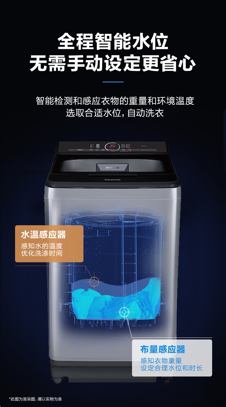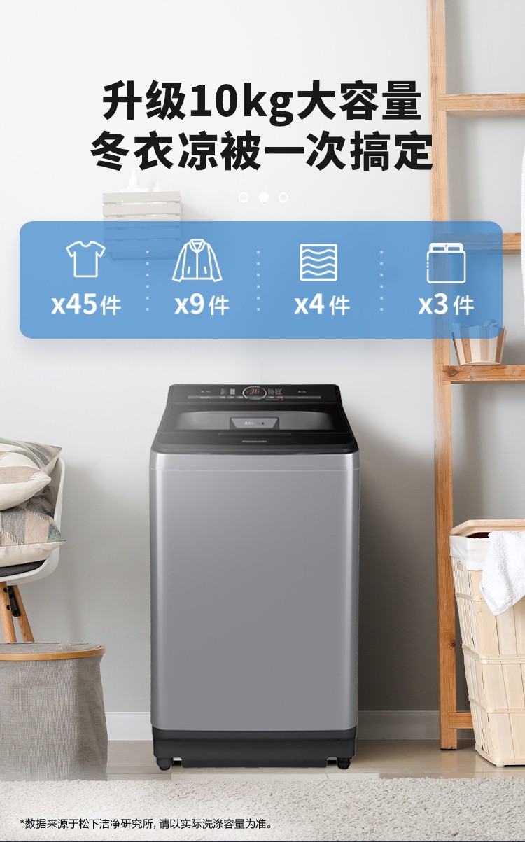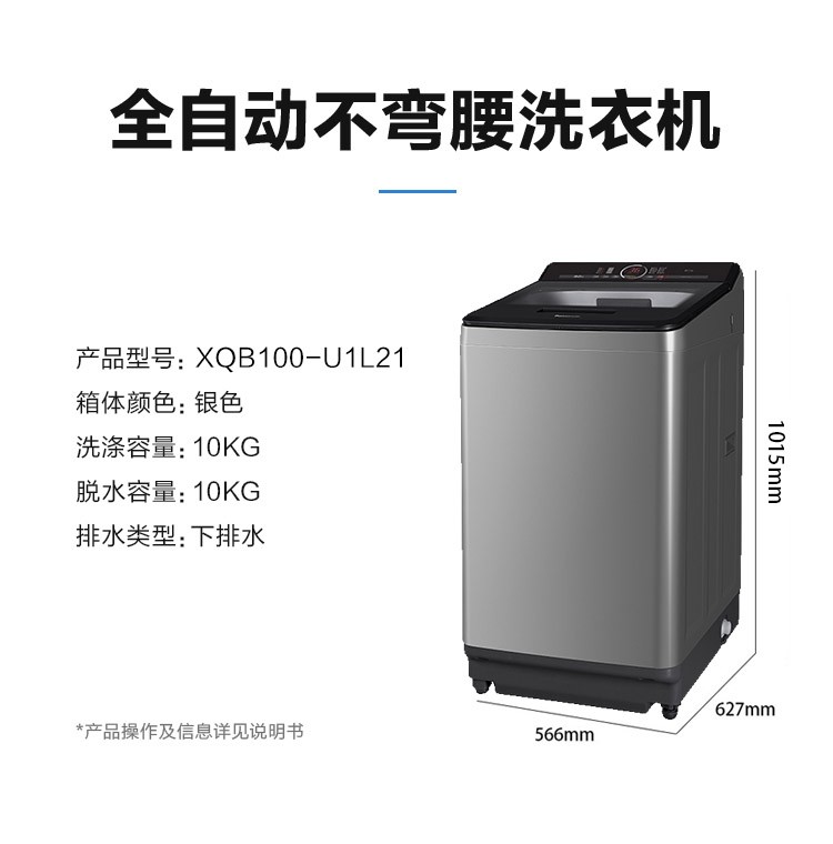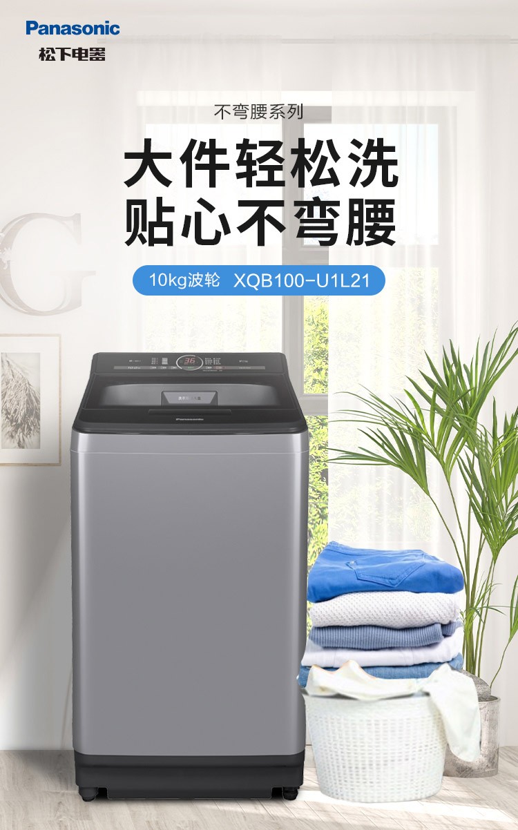 松下XQB100-U1C2A 不弯腰10kg全自动波轮 大容量 一键智慧洗 桶洗净