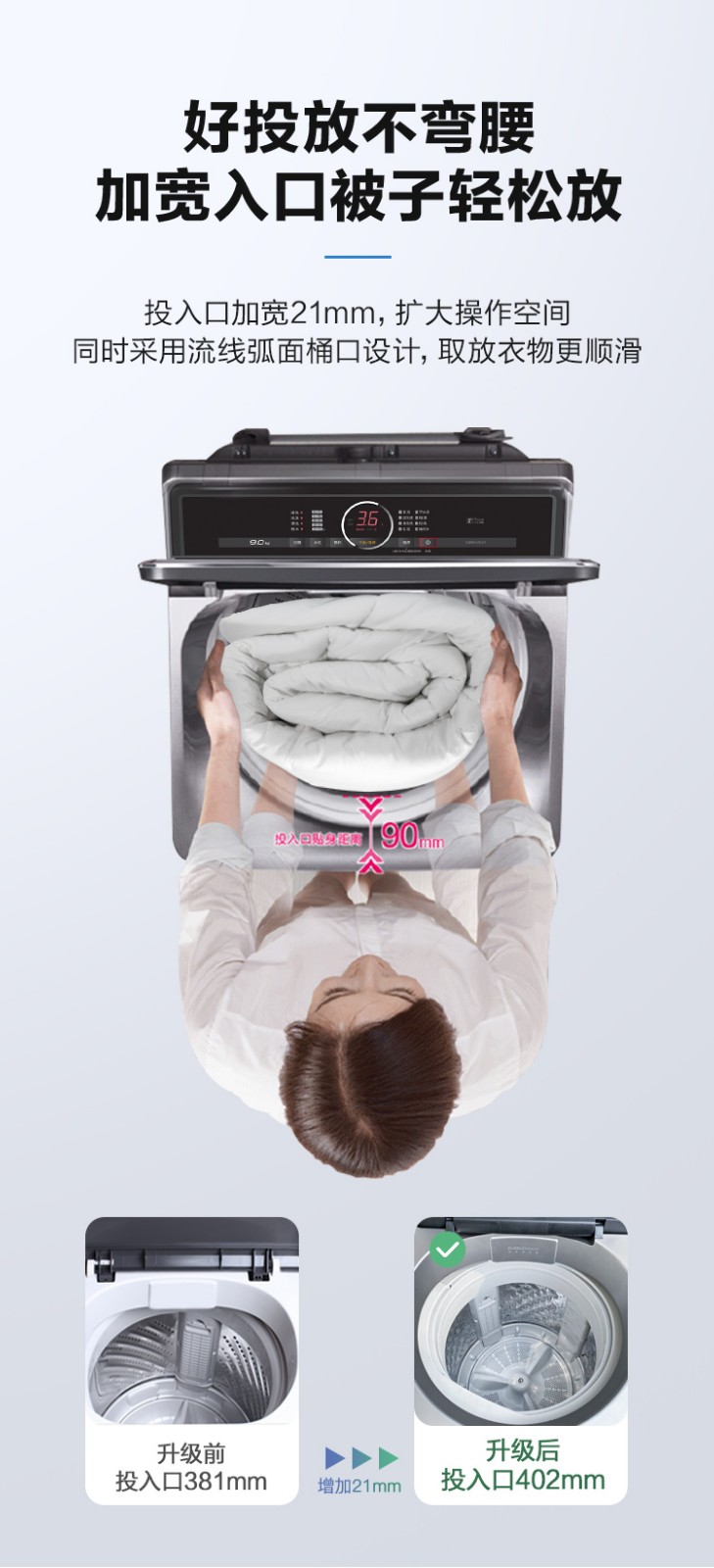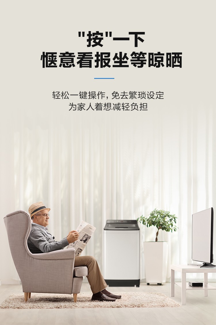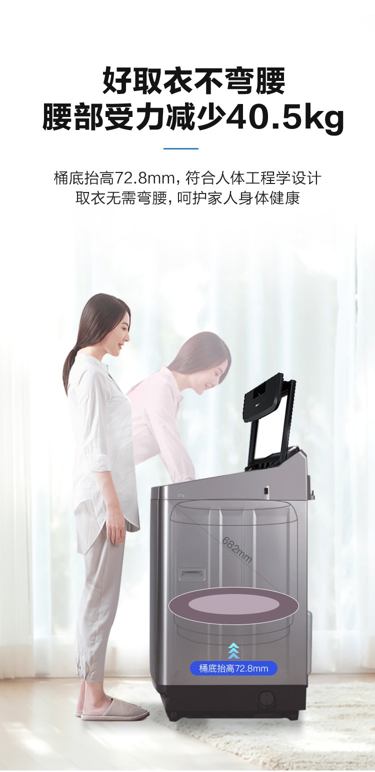 松下XQB100-U1C2A 不弯腰10kg全自动波轮 大容量 一键智慧洗 桶洗净