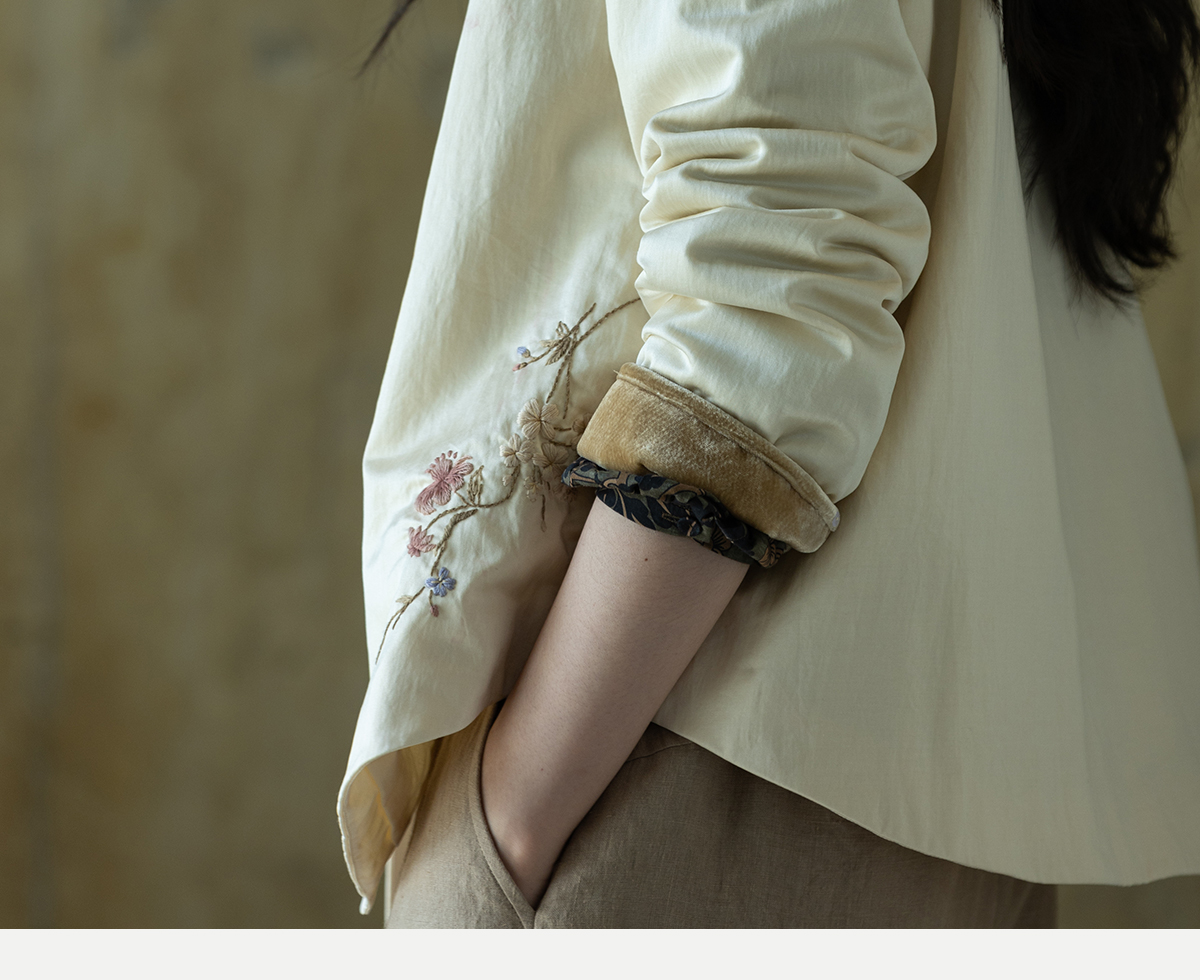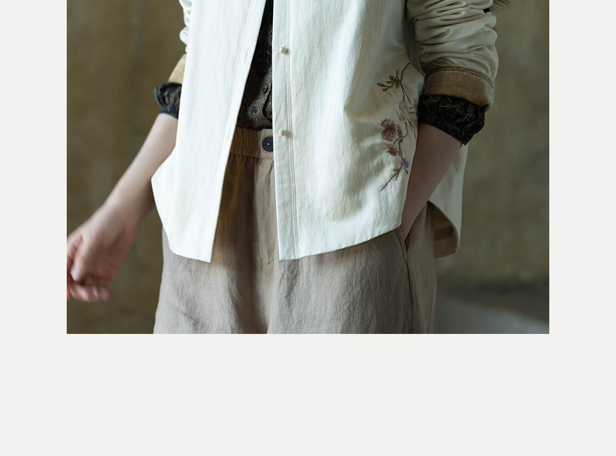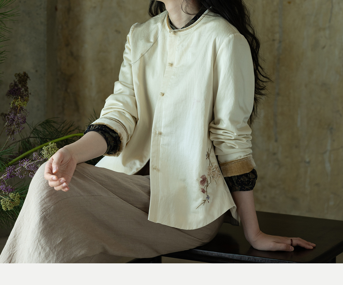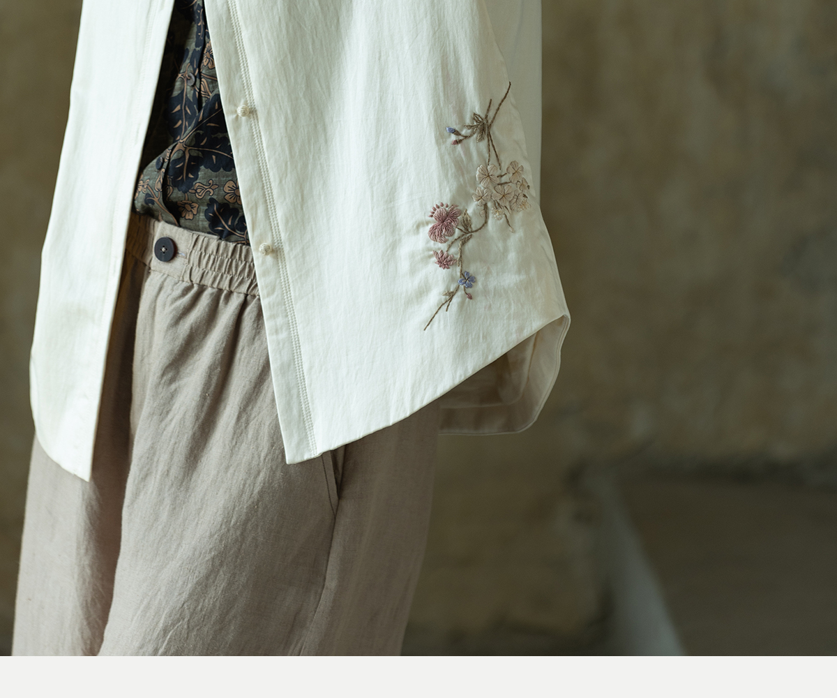 牧衣游原创 丝棉手工刺绣衬衫新款轻薄质感复古文艺百搭外套 谷木