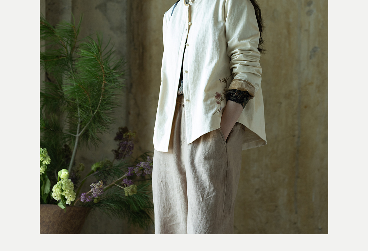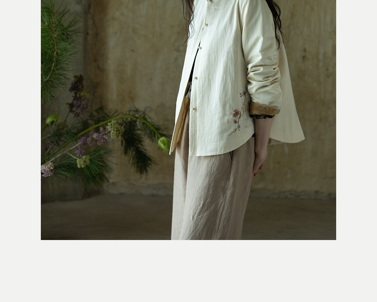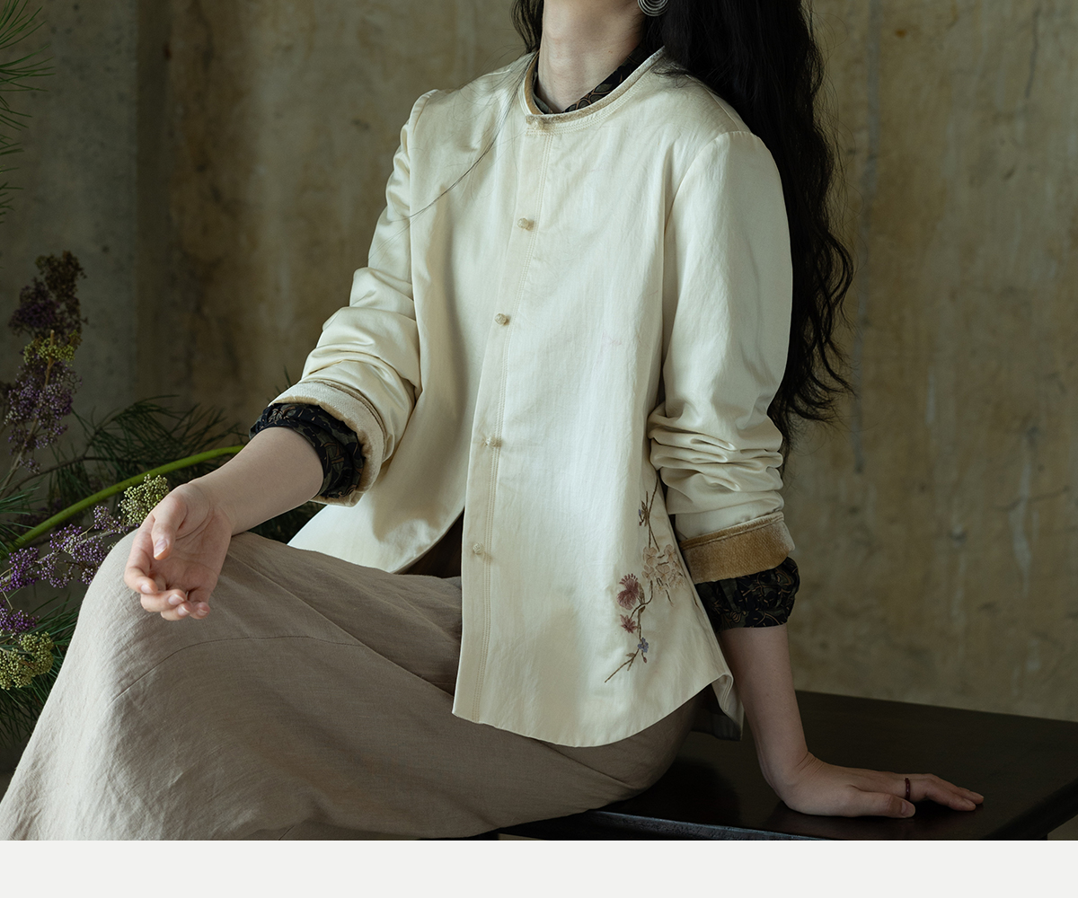 牧衣游原创 丝棉手工刺绣衬衫新款轻薄质感复古文艺百搭外套 谷木