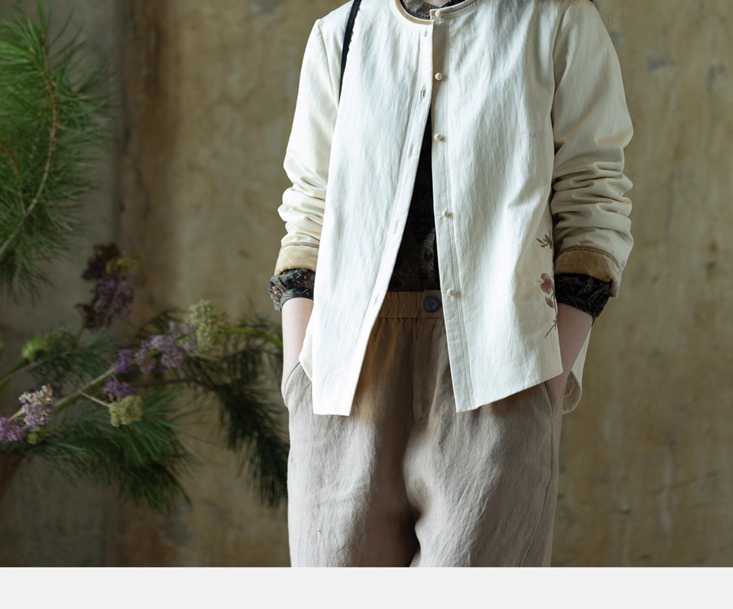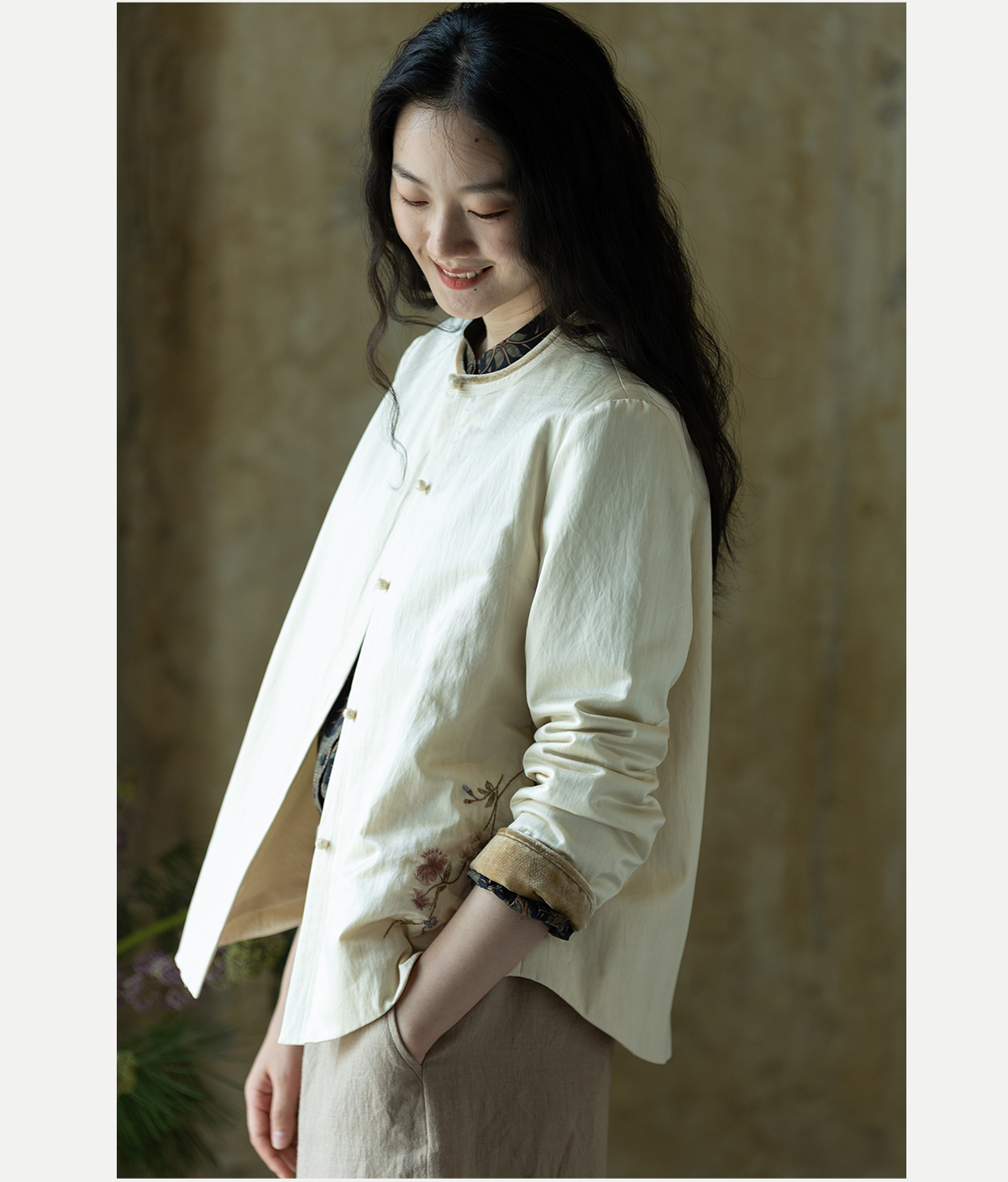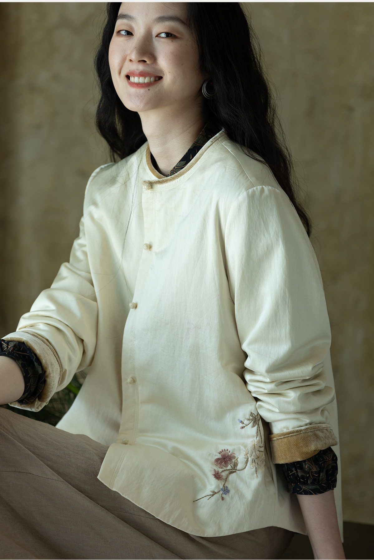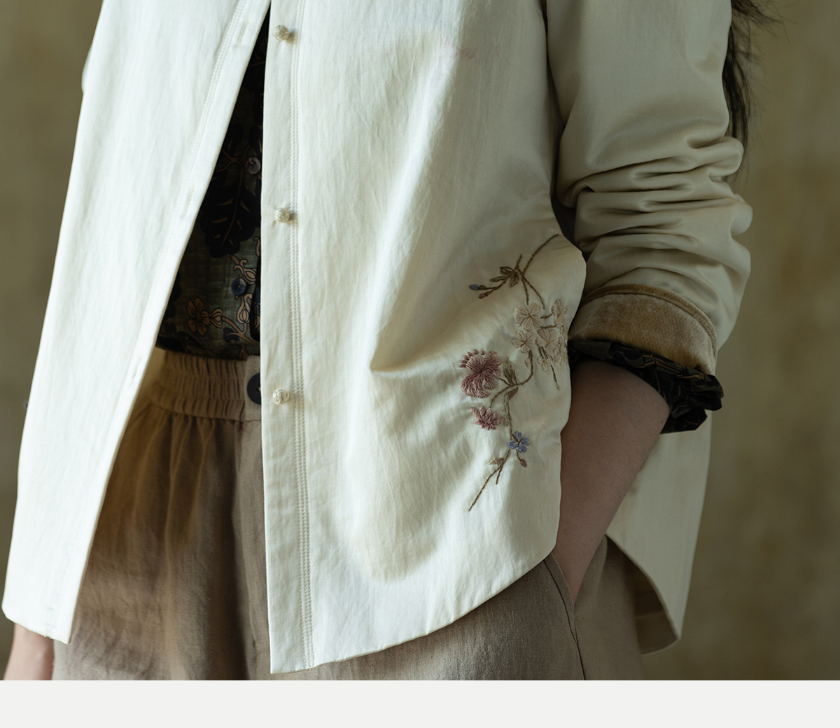 牧衣游原创 丝棉手工刺绣衬衫新款轻薄质感复古文艺百搭外套 谷木