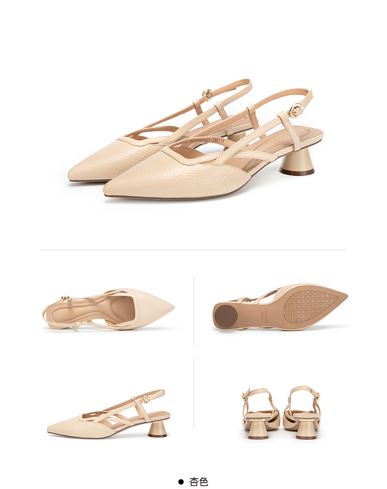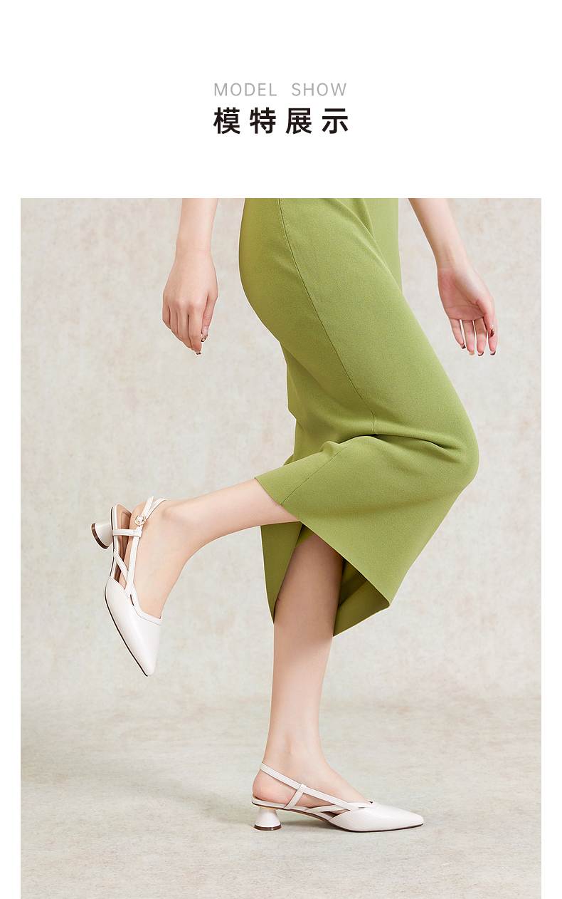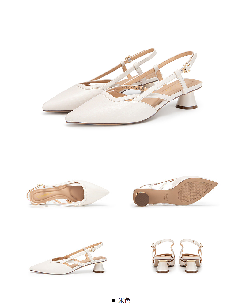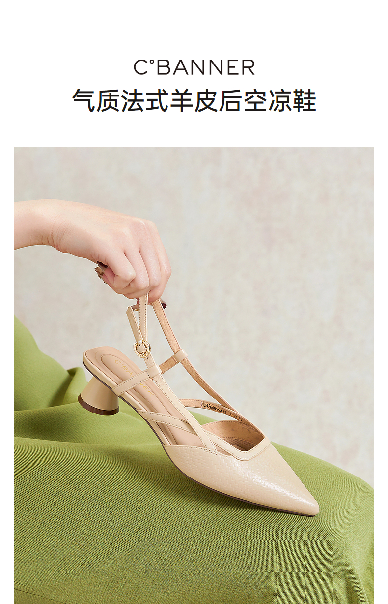千百度通勤时装凉鞋女夏季粗中跟尖头后空凉鞋A24206055