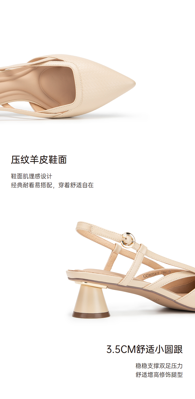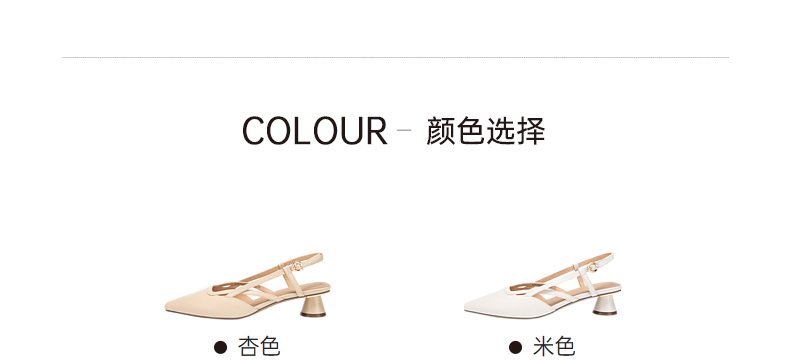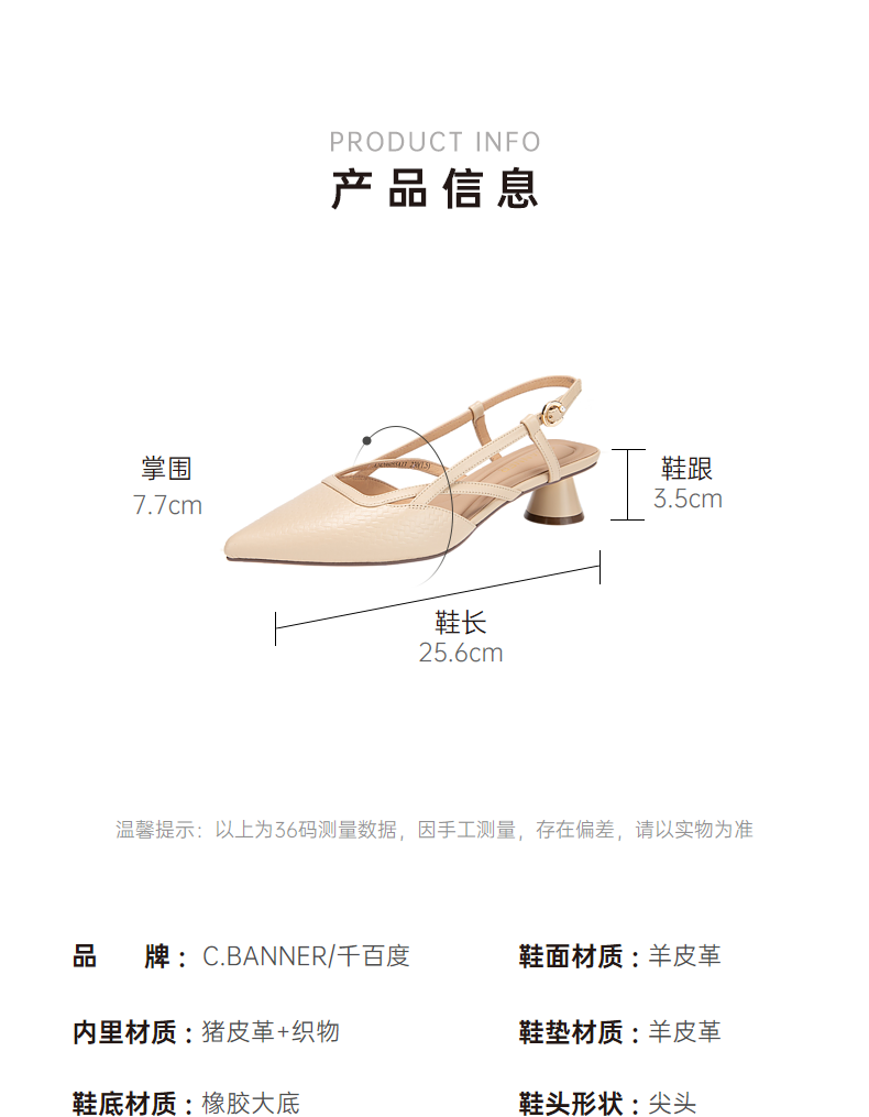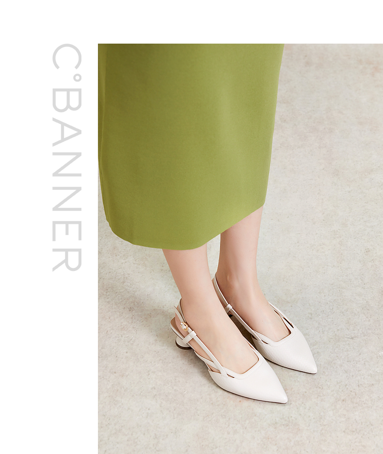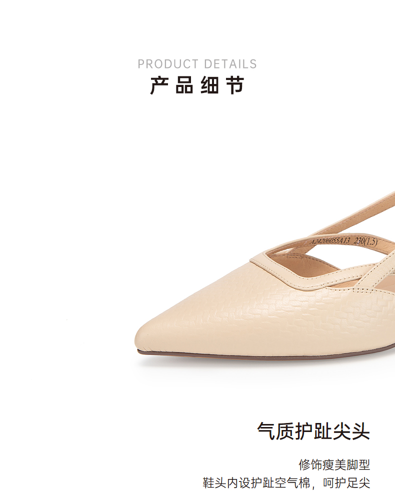 千百度通勤时装凉鞋女夏季粗中跟尖头后空凉鞋A24206055