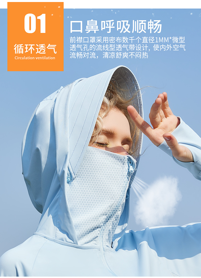 UPF50+防晒衣女夏季新款防紫外线外套运动户外钓鱼长袖连帽防晒服