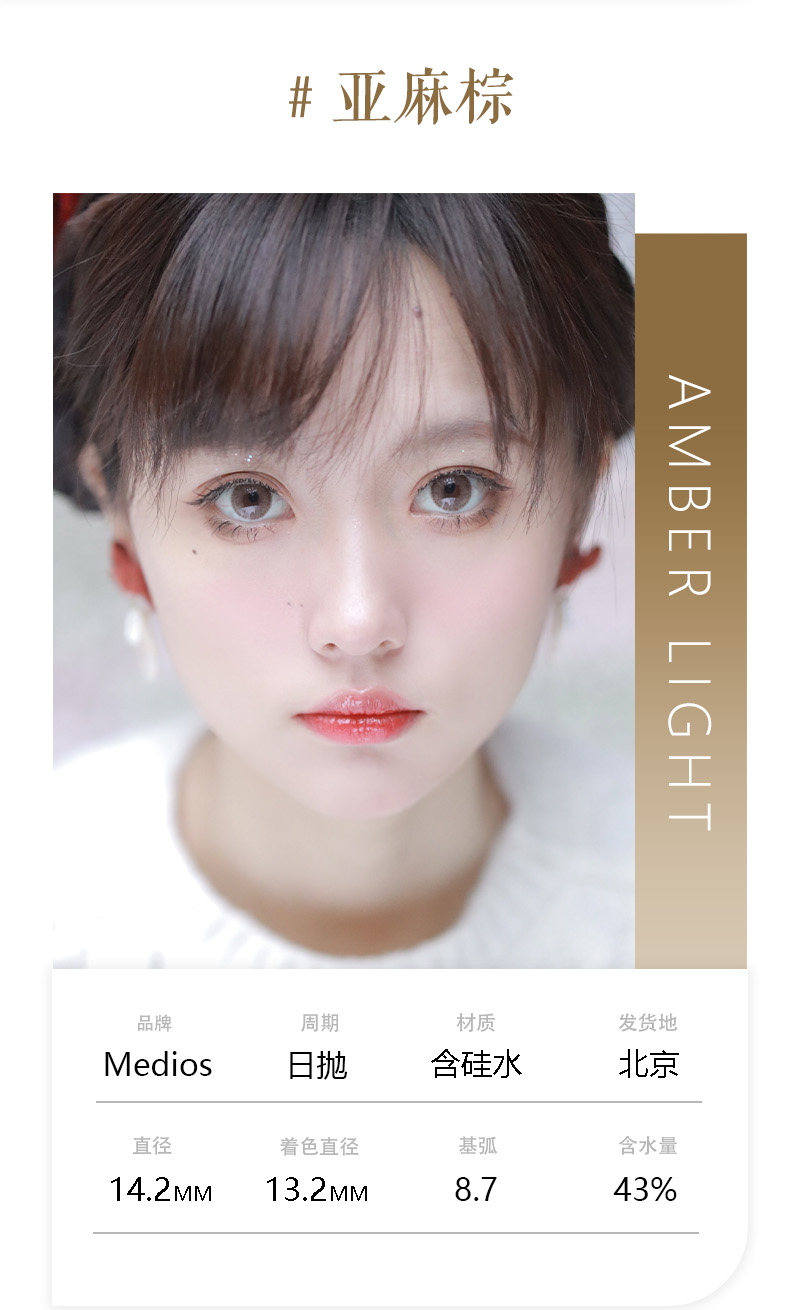 Medios 亚麻棕 日抛 10片装 14.2mm 着色13.2mm 基弧8.7