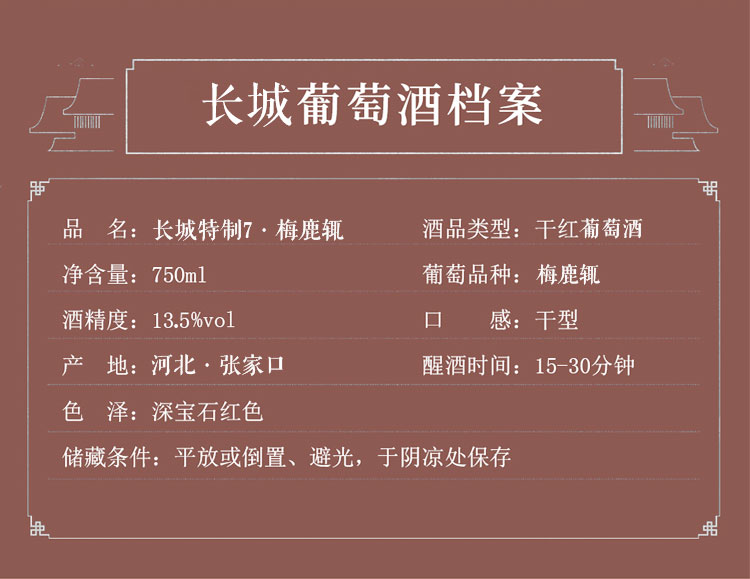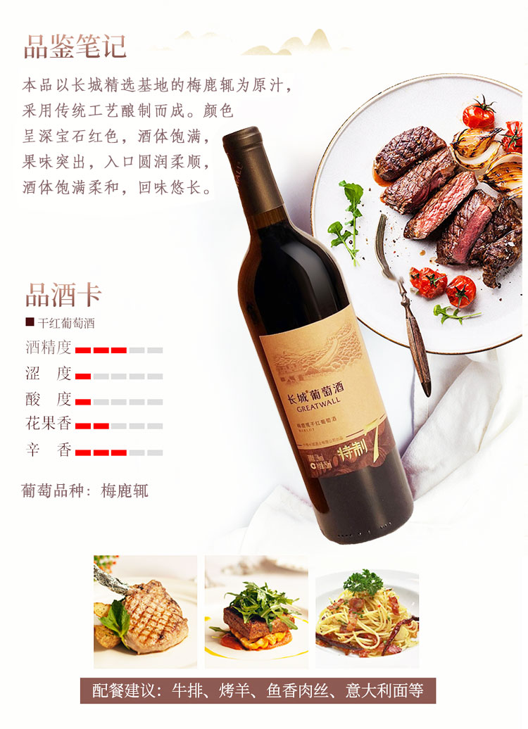 长城特制7梅鹿辄 干型红葡萄酒 750ml *1支(盒装)