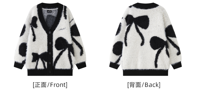 [15天内发][下单送背心]YKYB仿貂毛绣花蝴蝶趣味感OVERSIZE双色慵懒针织衫毛衣