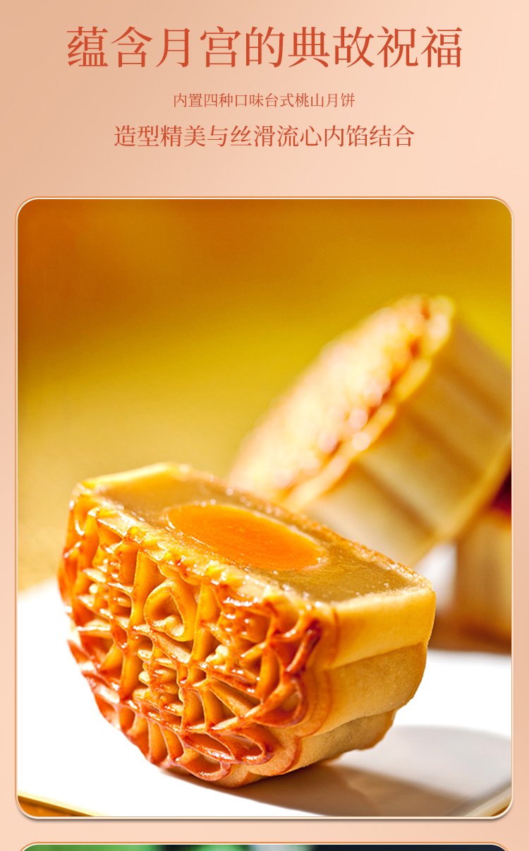 圆顺-125g黑芝麻月饼X2个,100g椰皇味冬蓉月饼X2个,100g凤梨味冬蓉月饼X2个,80g蛋黄白莲蓉月饼X2个