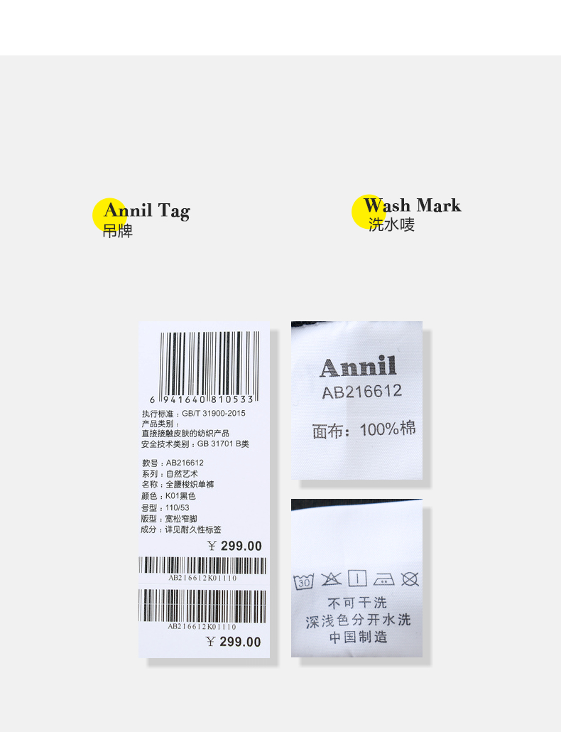 安奈儿男童全腰梭织单裤ab216612