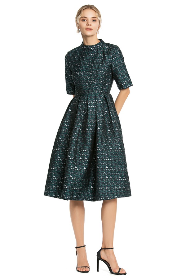 EMC亿美丞 格纹喇叭袖连衣裙 3648