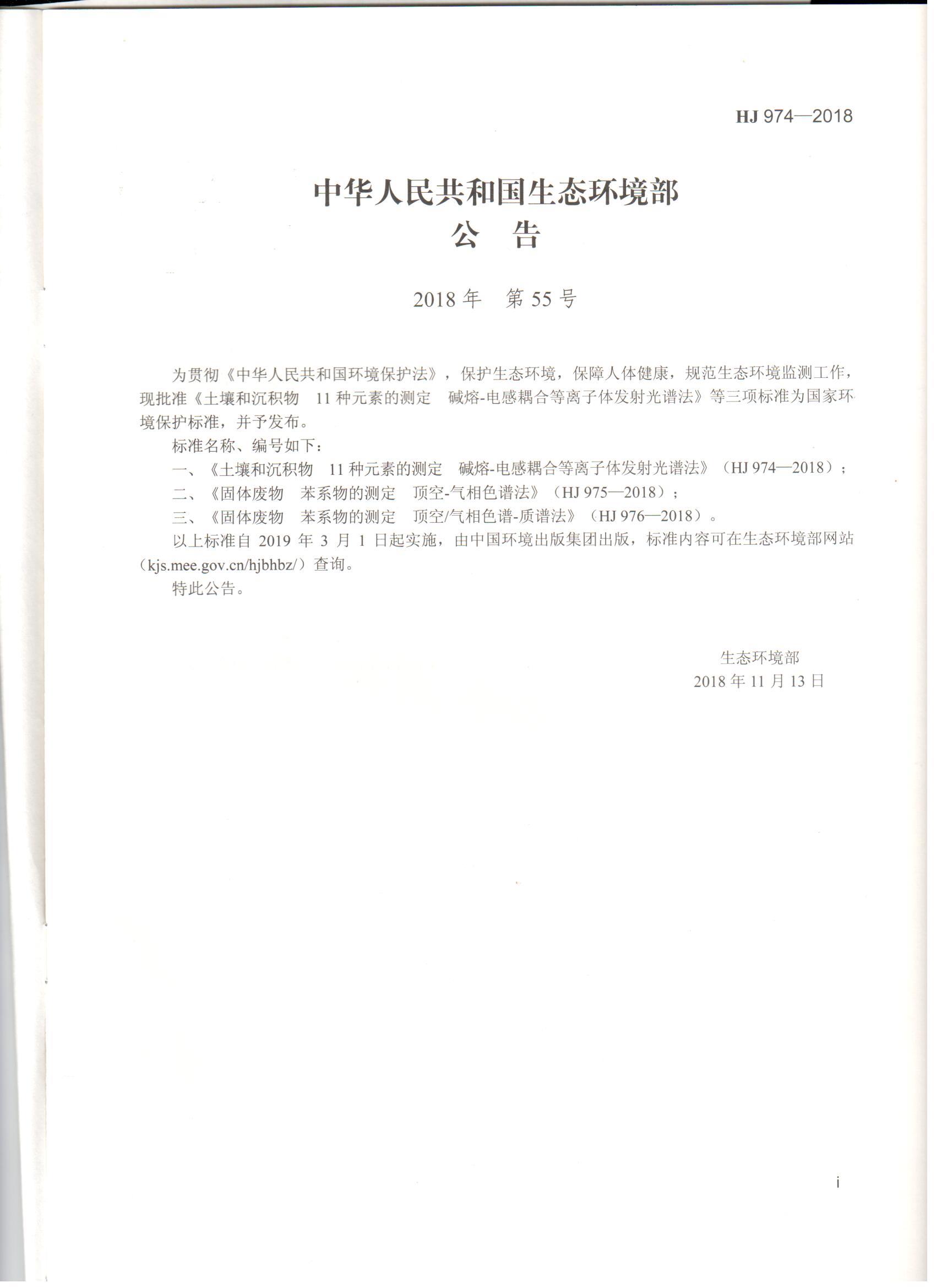 HJ974-2018 土壤和沉积物 11种元素的测定 碱熔-电感耦合等离子体发射光谱法